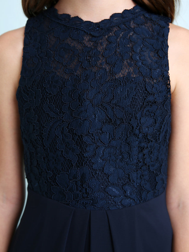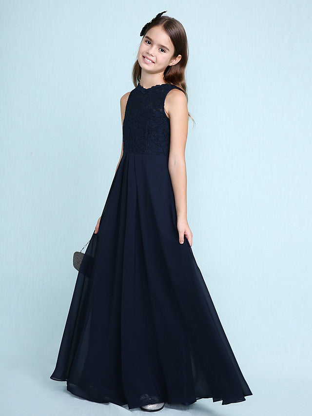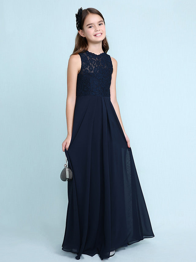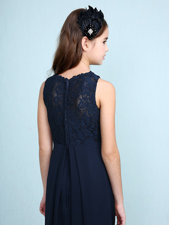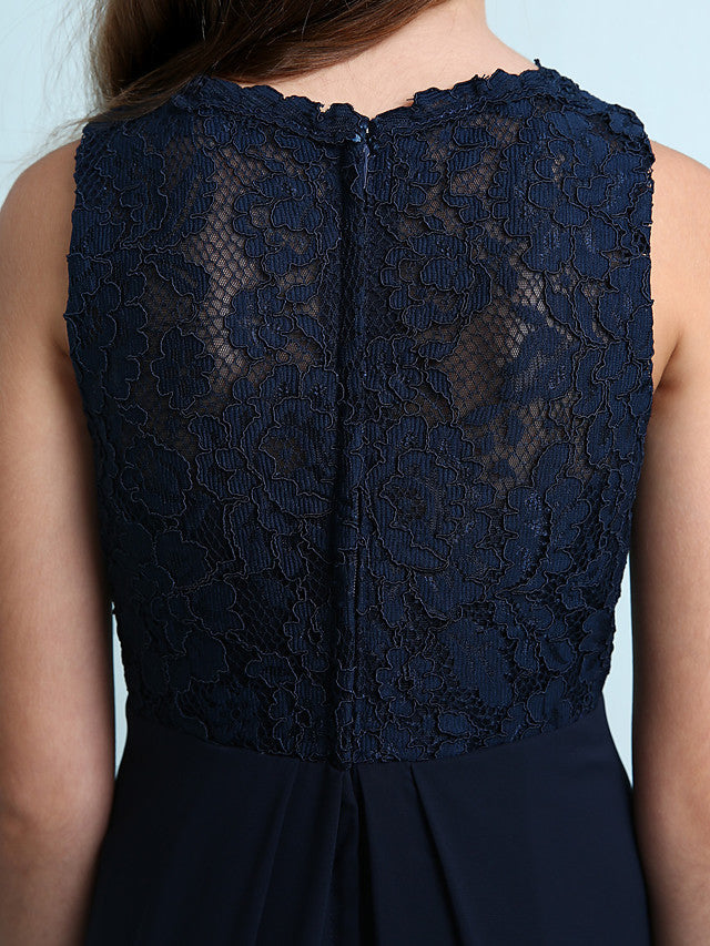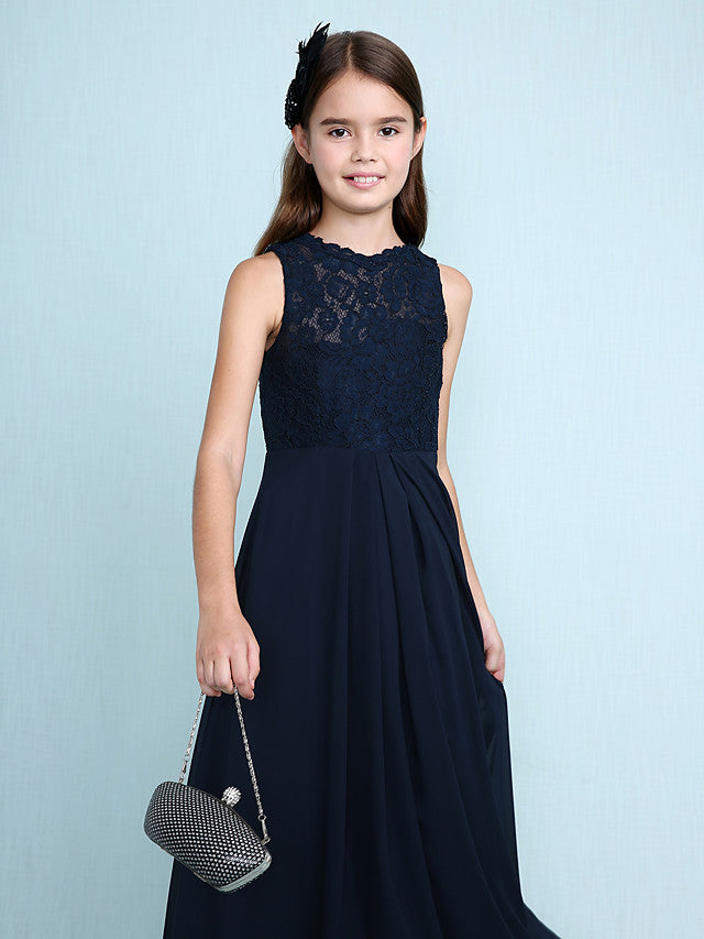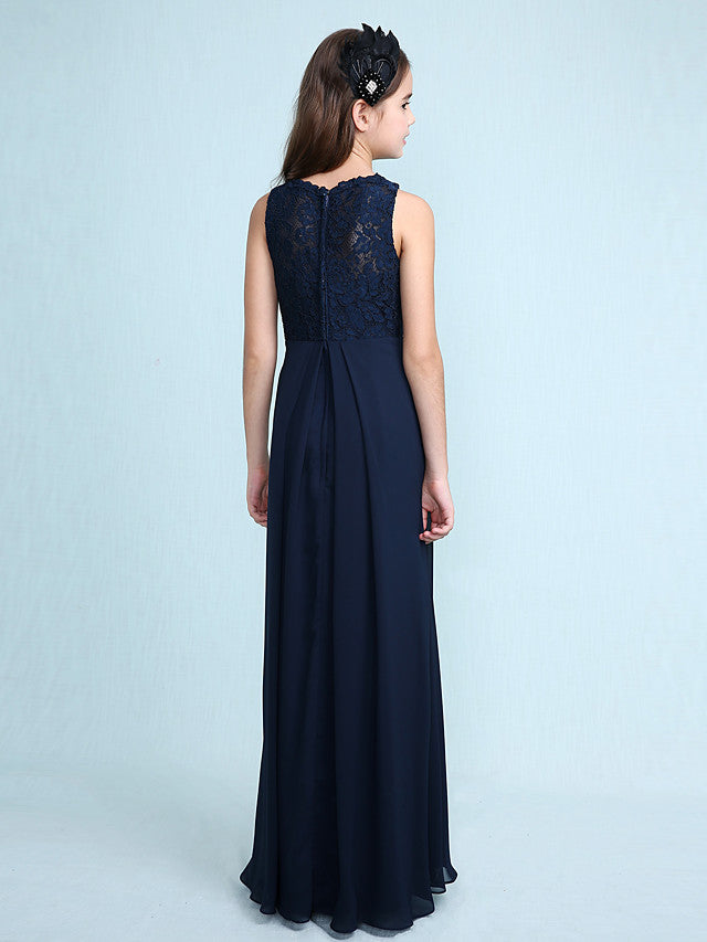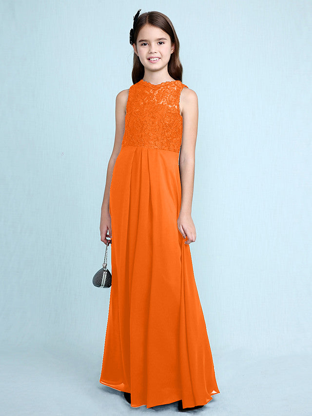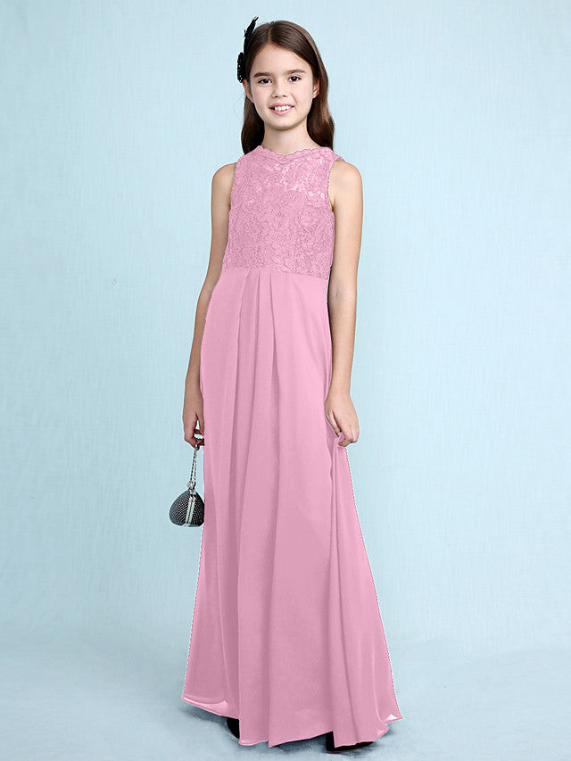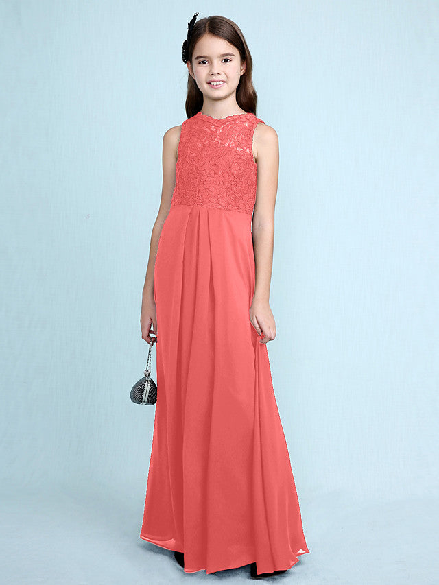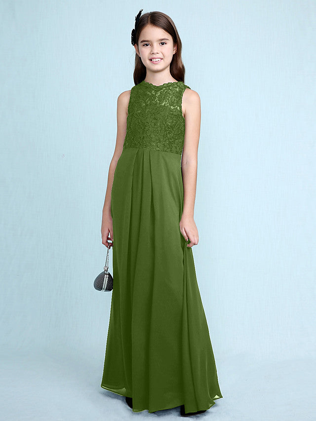 Sheath Column Scoop Neck Floor Length Chiffon & Lace Junior Bridesmaid Dress