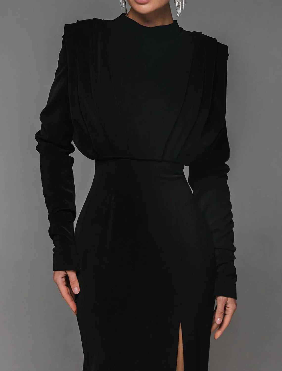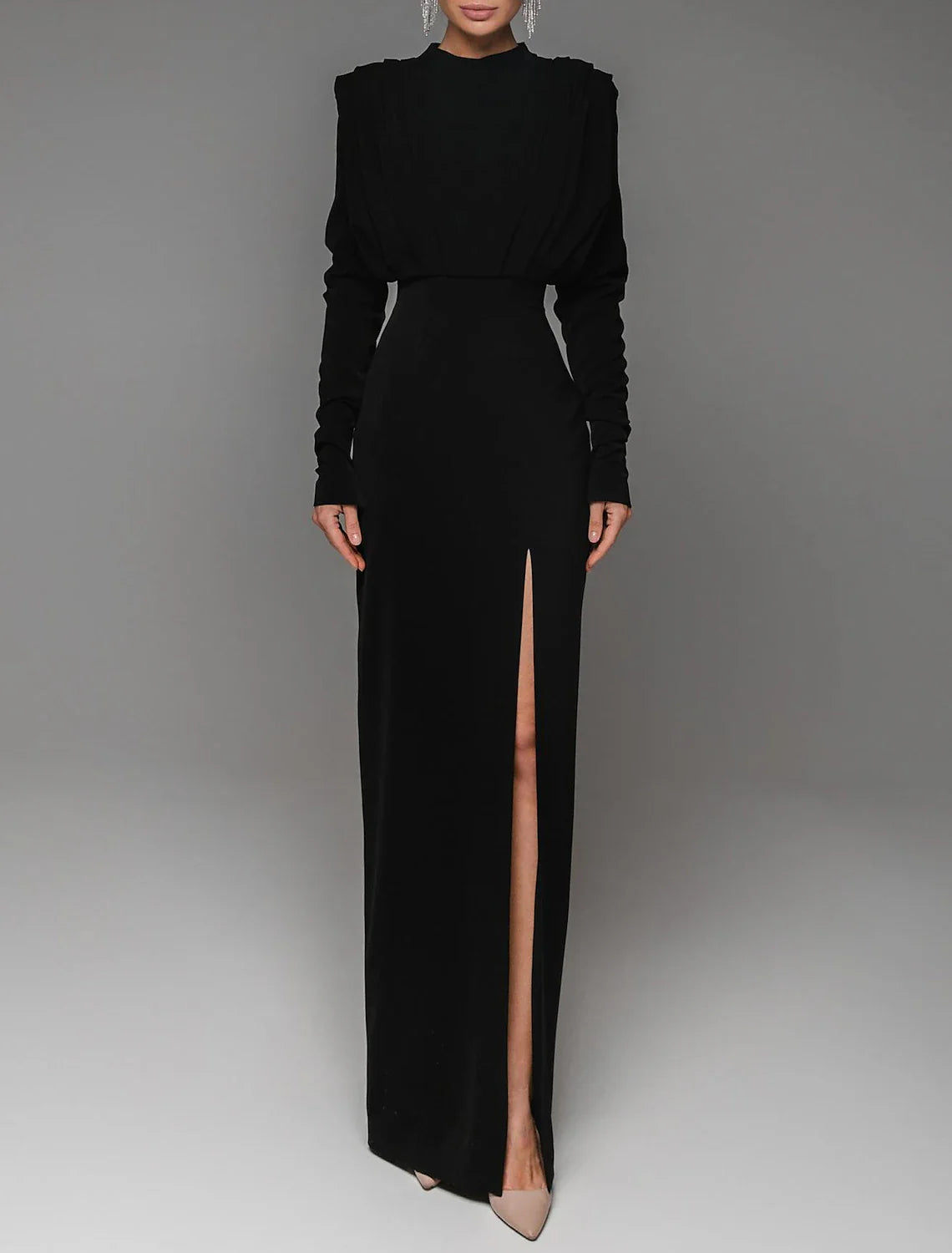 Sheath Evening Gown Elegant Dress Formal Red Green Dress Floor Length Long Sleeve High Neck Stretch Fabric with Ruched Slit