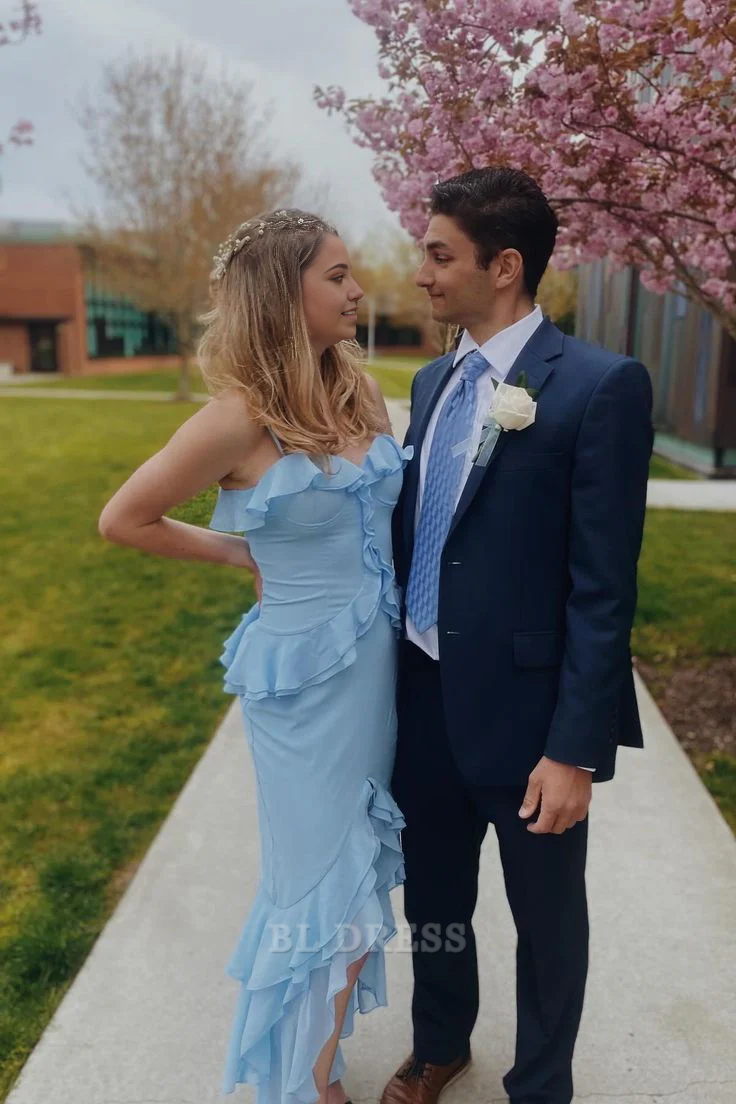 Sheath Straps Chiffon Ruffle Slit formal dresses Bridesmaid Dresses evening gown Prom Dress