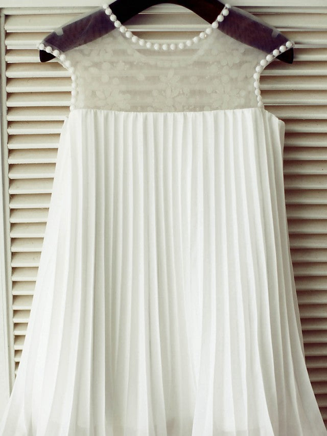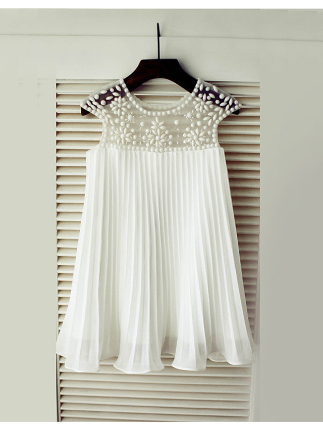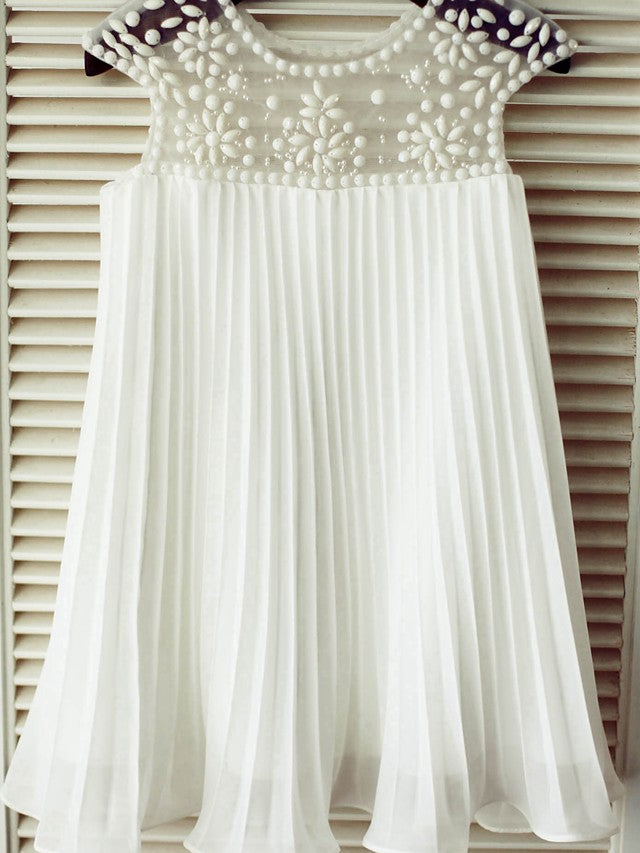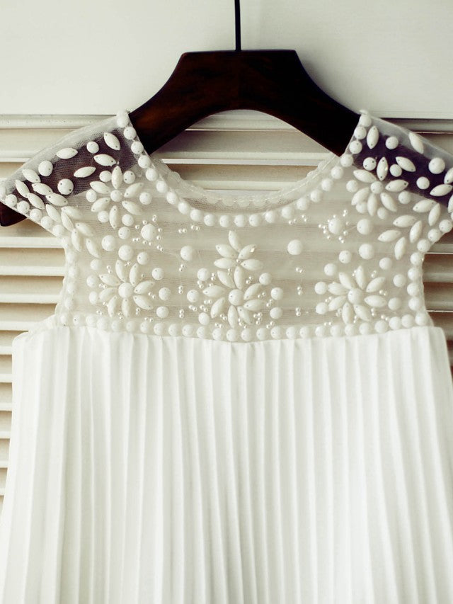 Short Sleeve A-Line Flower Girl Dress with Beading and Draping