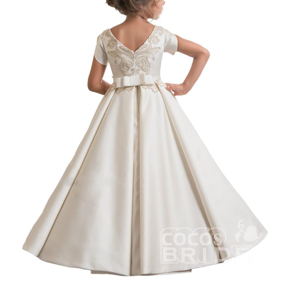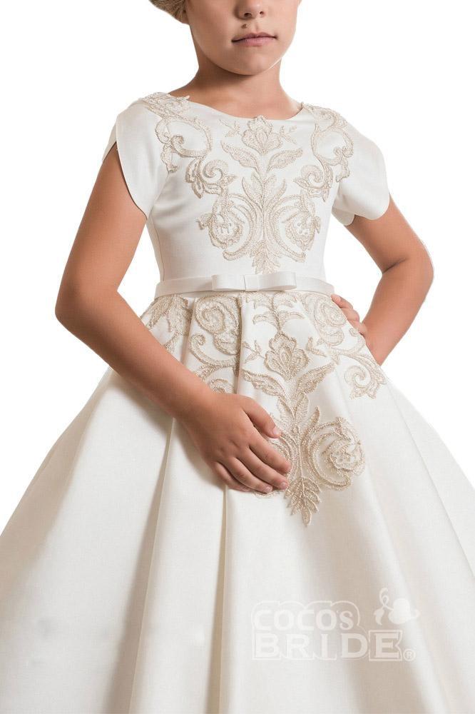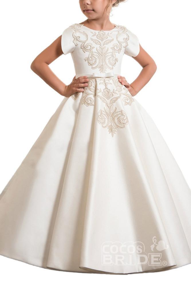 Short Sleeves Ball Gown for Girls | Scoop Neck Flower Dress