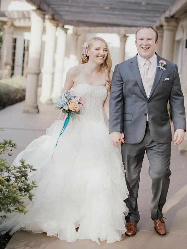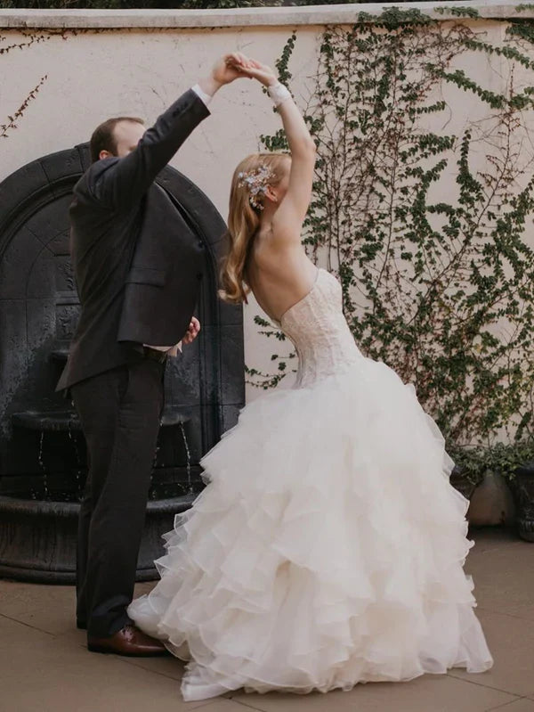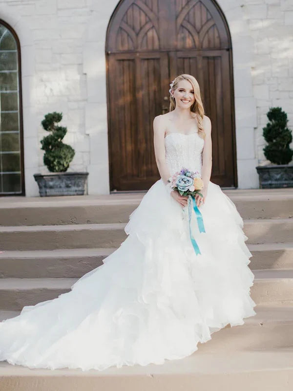 Simple Strapless Off-The-Shoulder Tulle Tiered Princess Wedding Dresses Gowns