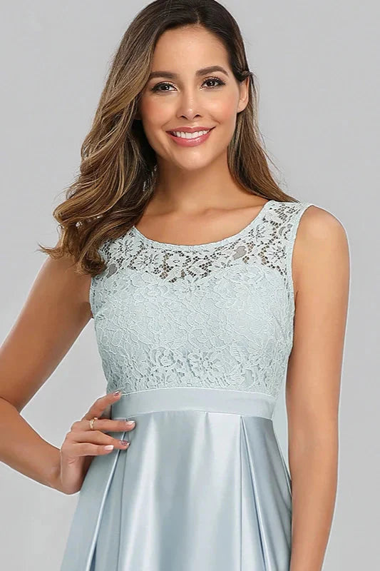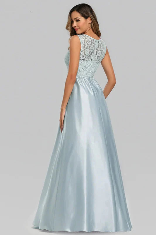 Sky Blue Sleeveless Lace Evening Gowns Long Prom Dress Online