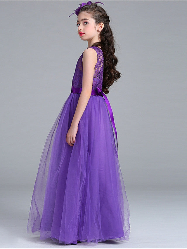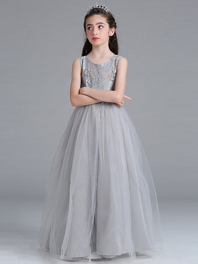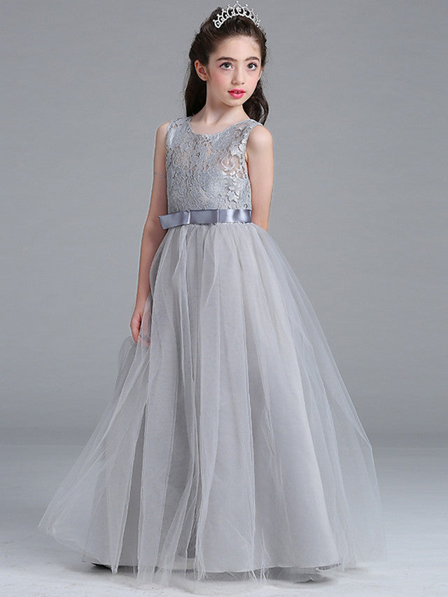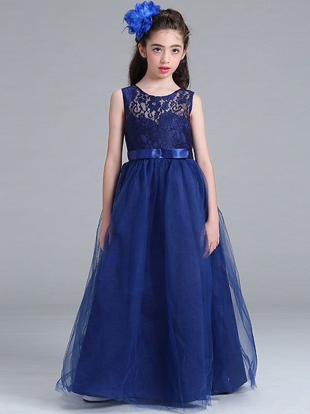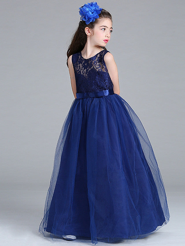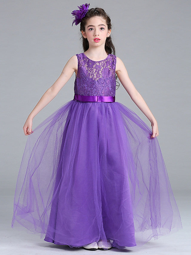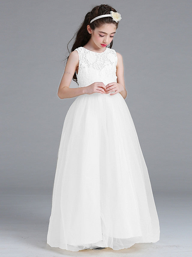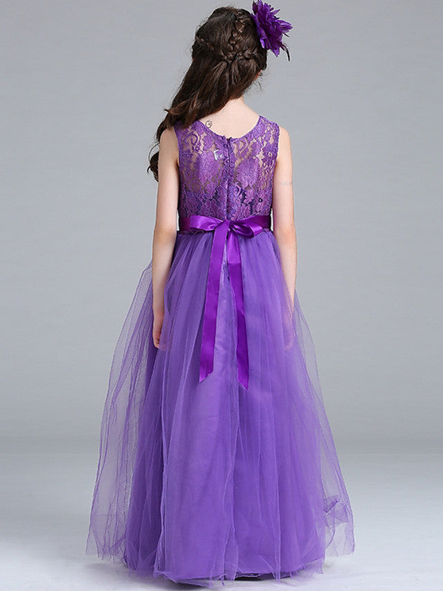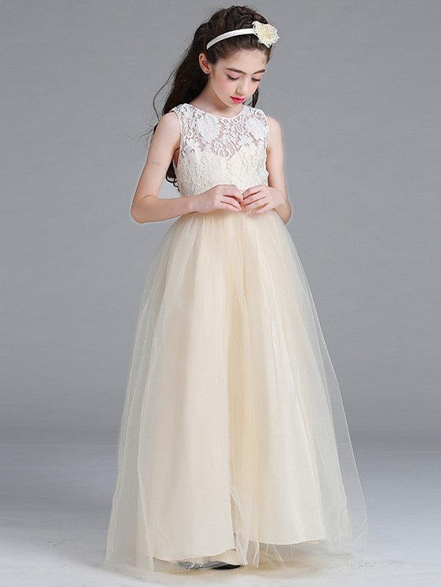 Sleeveless A-Line Flower Girl Dress with Lace Illussion Neck Tulle