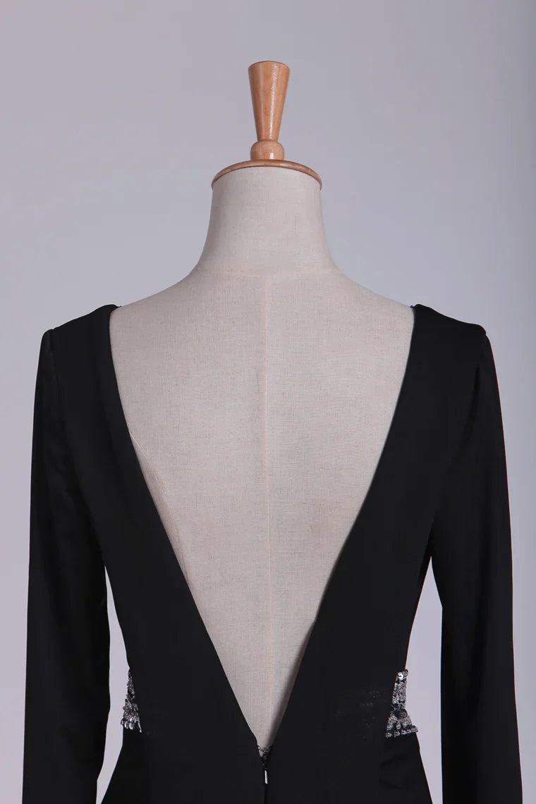 Sleeves V Neck Sexy Open Back Long Beading Mother Of The Bride Dresses