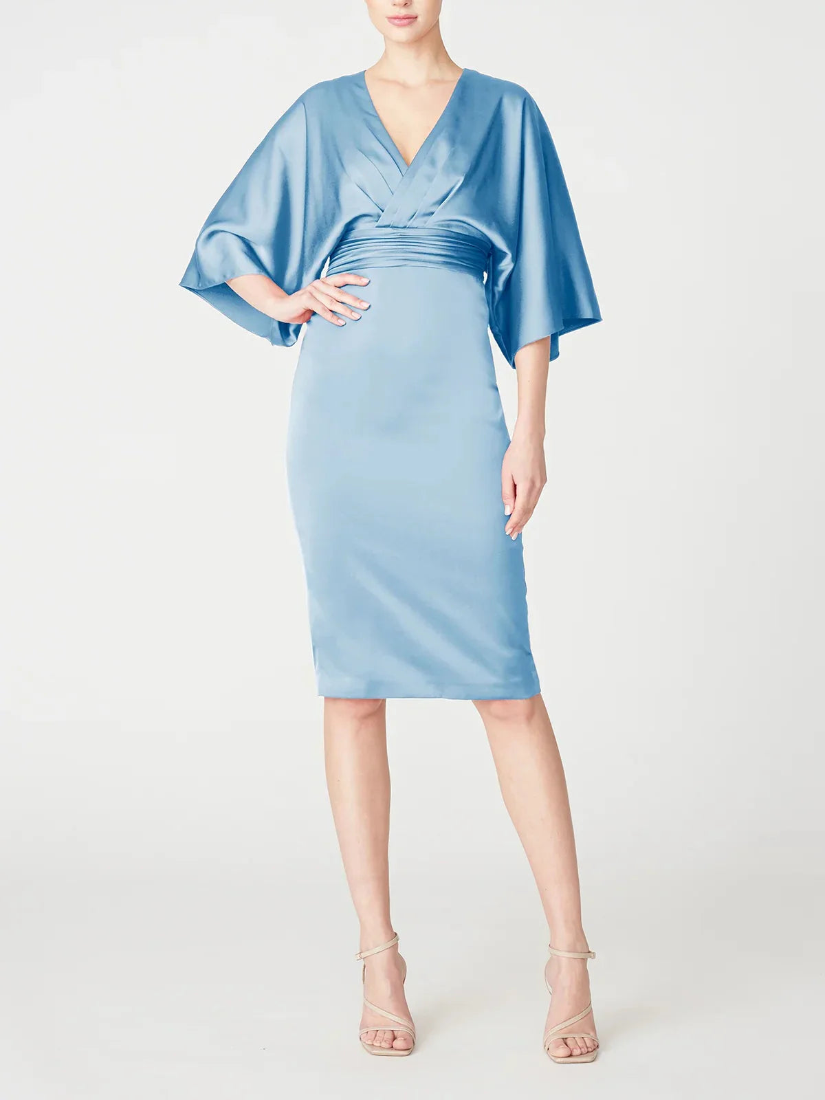 Slim fit/column V-neck mid sleeve knee length ruffled edge mother of the bride dresses