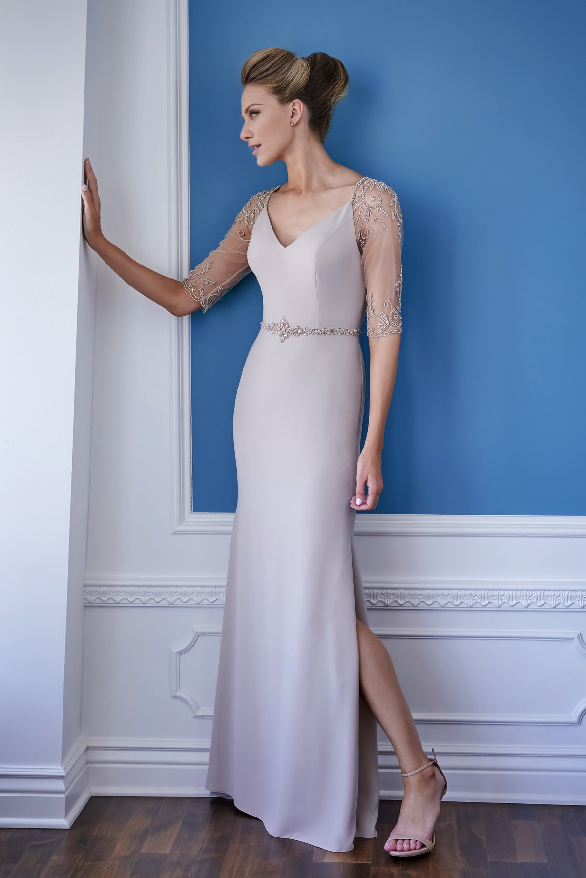 Soft long and elbow embroidered beaded sheer sleeves for mother of bride dresses