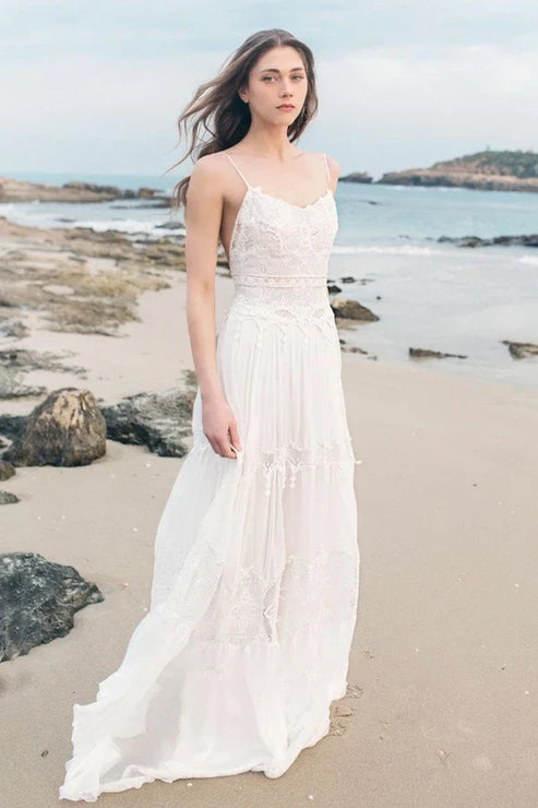 Spaghetti Sleeveless Chiffon Beach Boho Wedding Dress