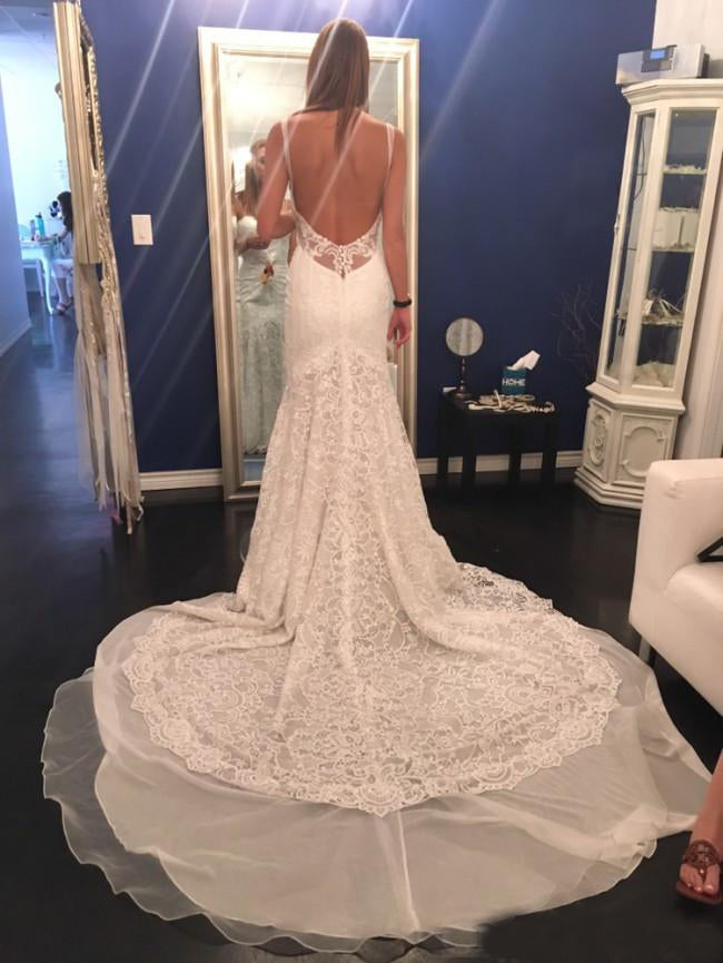 Spaghetti Straps Lace Sweep Train Wedding Dresses