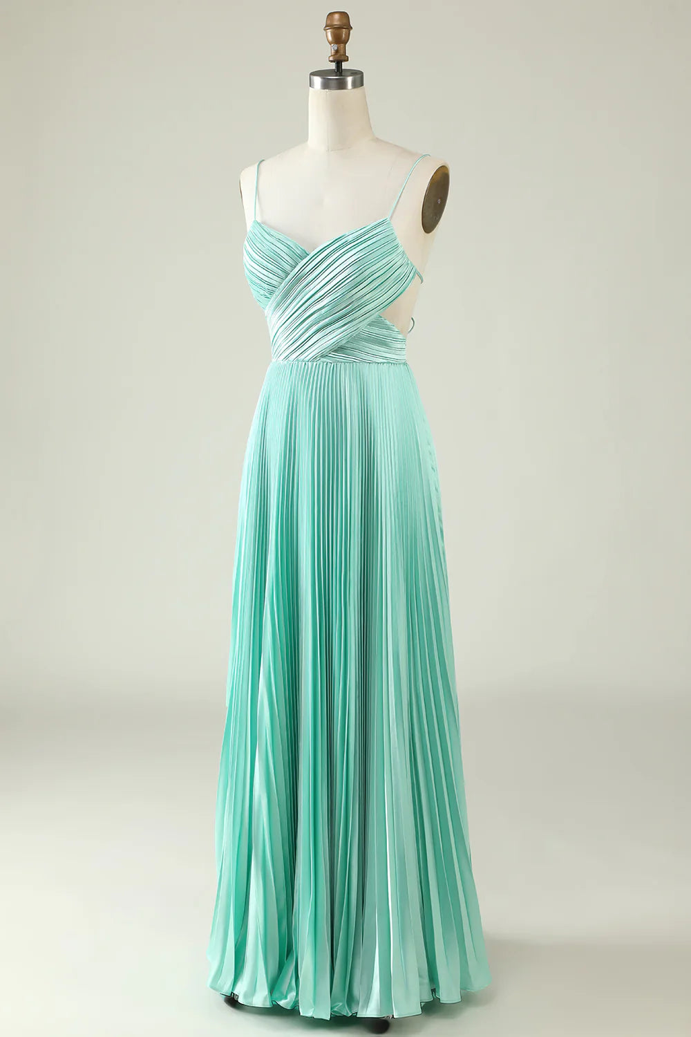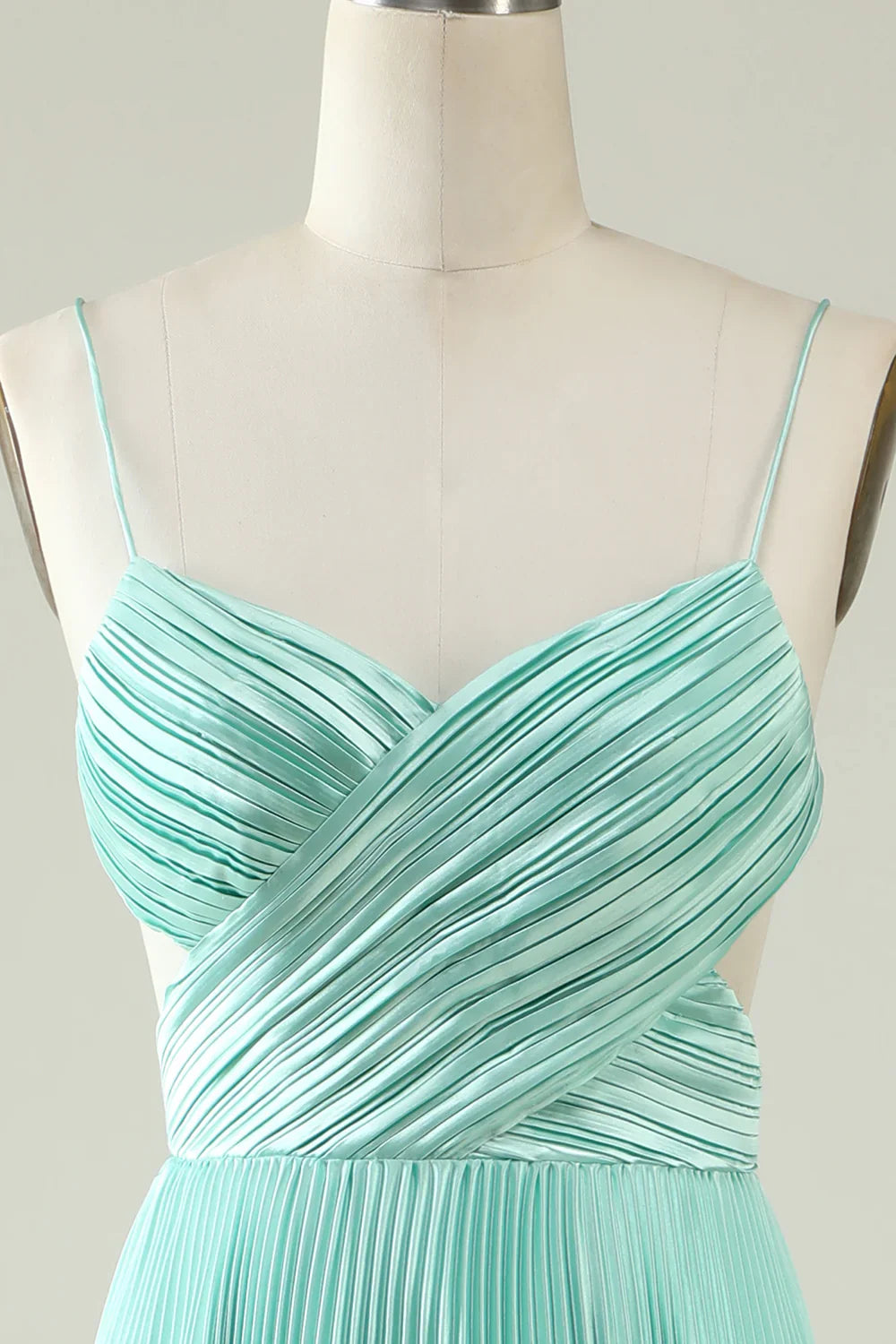 Spaghetti Straps Pleated Long Bridesmaid Dress