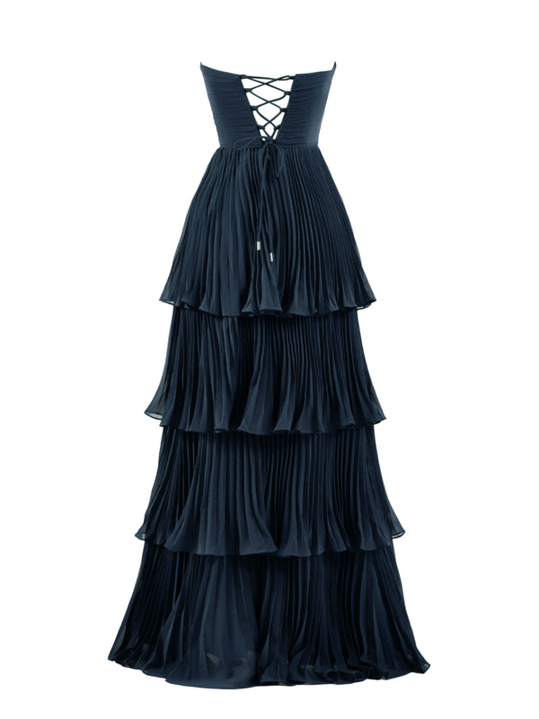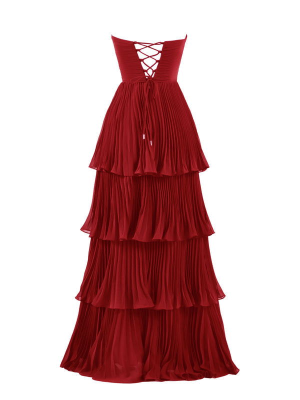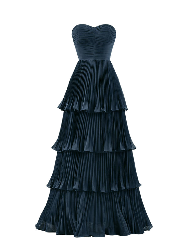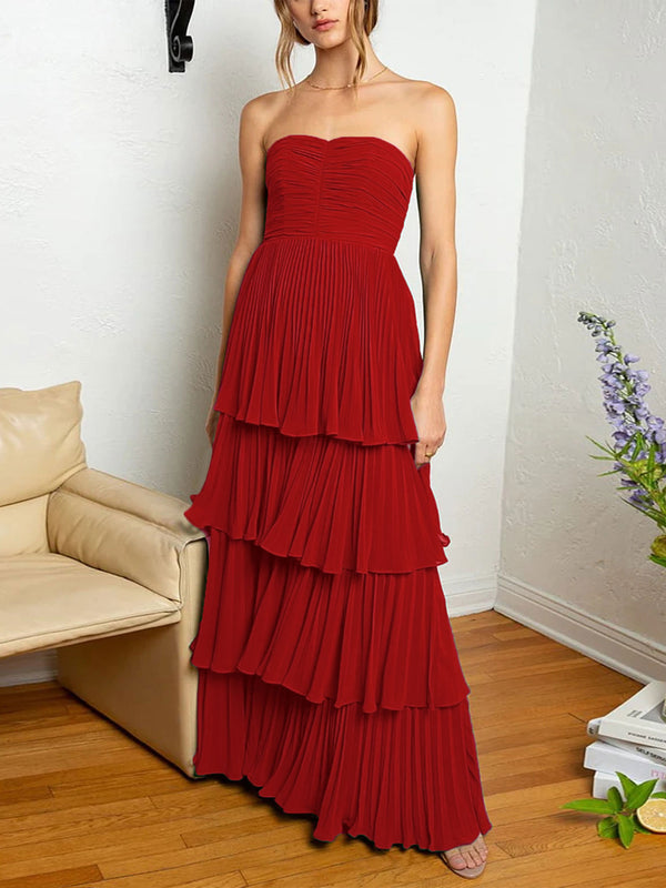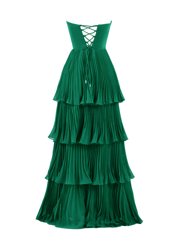 Strapless Emerald Green Ruffle Multi-Layer Long Prom Dress