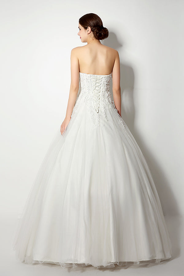long ivory wedding dress, lace-up back ivory wedding dress, strapless ivory wedding dress, aline ivory wedding dress.
