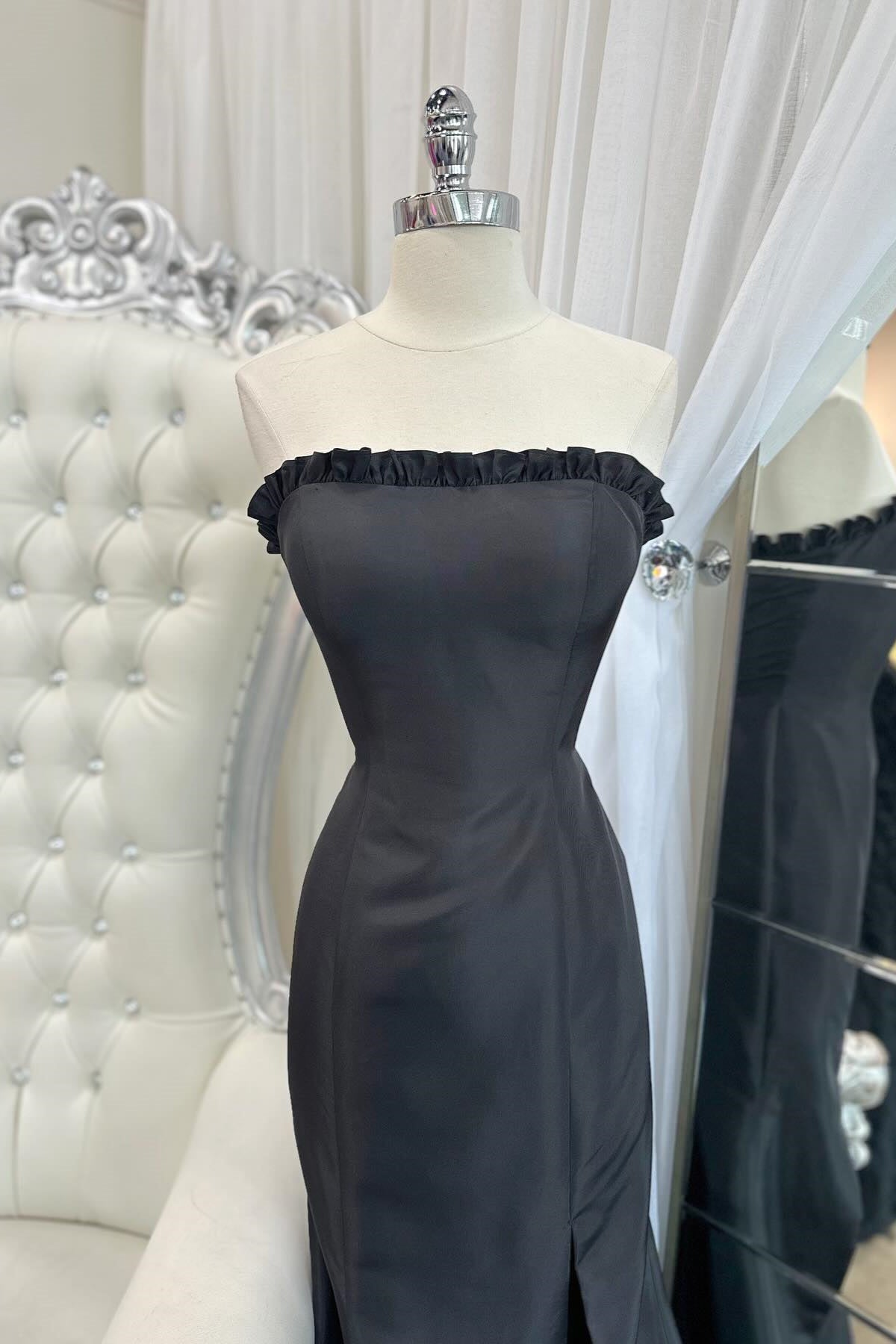 Classy Red Strapless Satin Mermaid Long Prom Dress with Slit