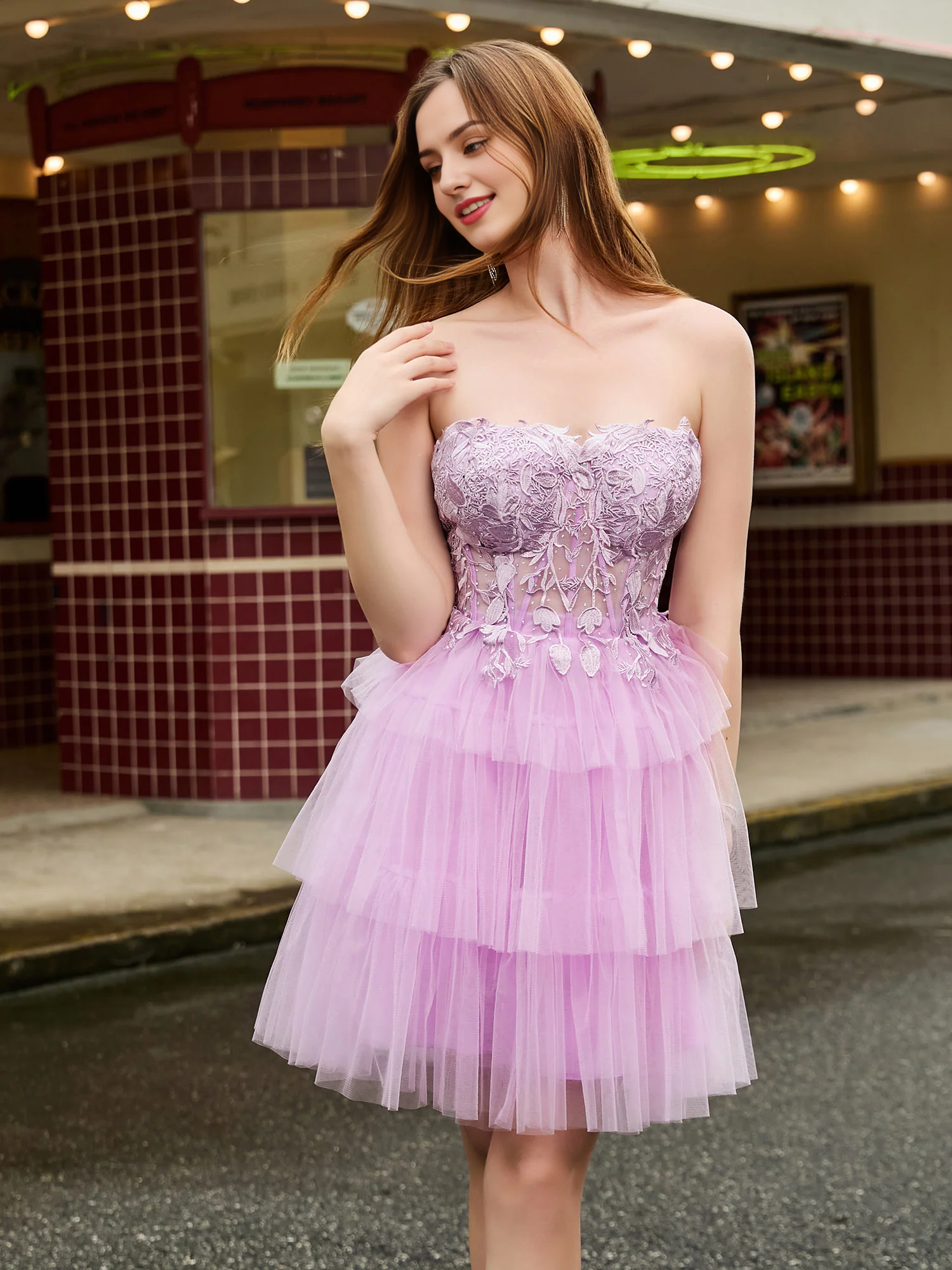 Strapless tight corset with layered chiffon upper layer short Homecoming dress
