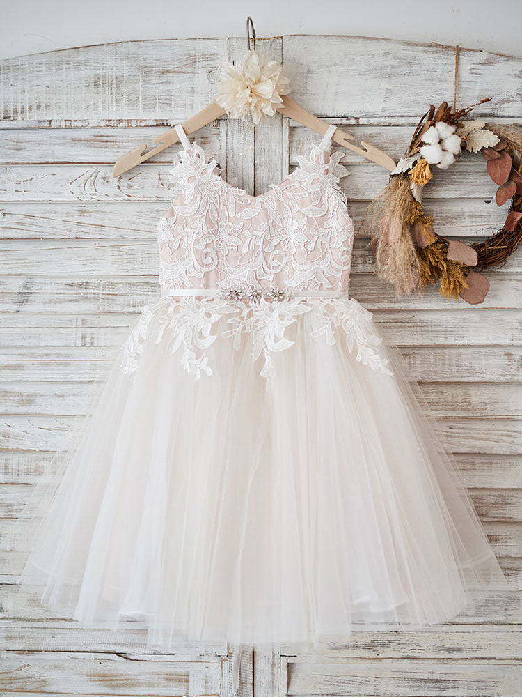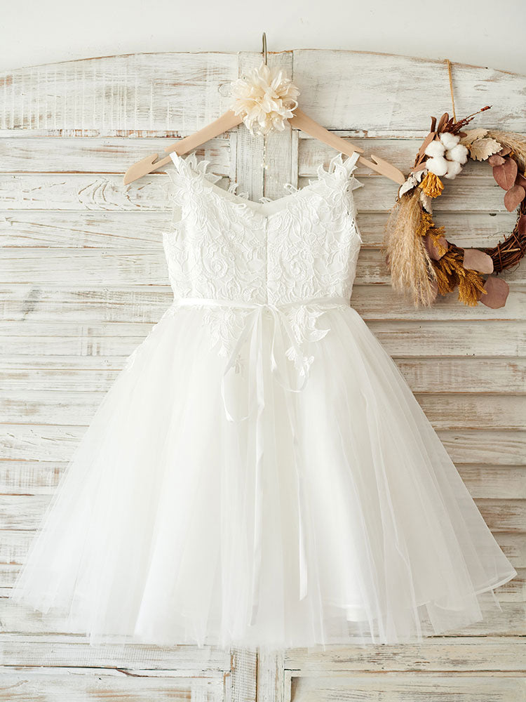 Stunning V-Neck Tulle Flower Girl Dress with Appliques