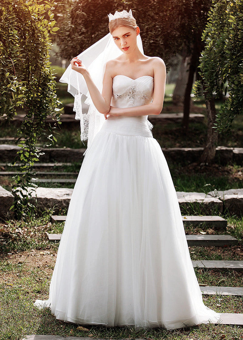 Silhouette: Princess, A-LineHemline / Train: Sweep / Brush TrainNeckline: Off ShoulderFabric: Tulle, LaceClosure: Zipper UPSleeve Length: Long SleeveWaistline: NaturalFully Lined: YesEmbellishment: AppliquesBuilt-In Bra: YesBoning: YesWedding Venues: ChurchTips: Professional dry cleaner only, Colors may vary slightly due to different monitor settingsTheme: Luxurious, RomanticWrap: No