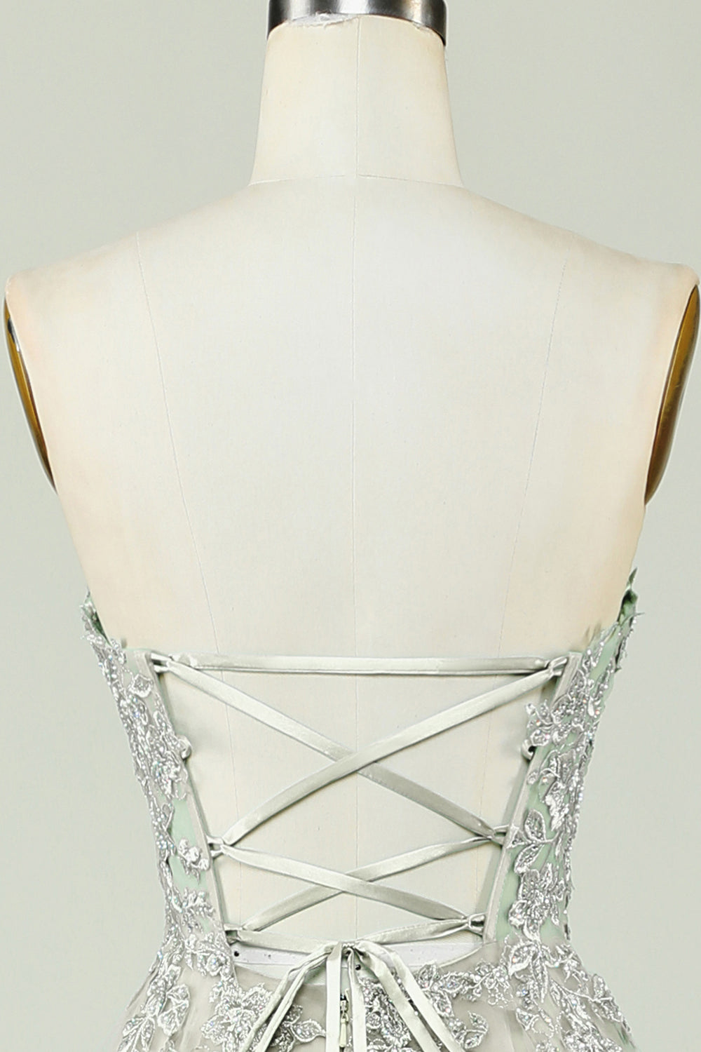 Sweetheart Beaded Light Green Long Prom Dress with Slit Front