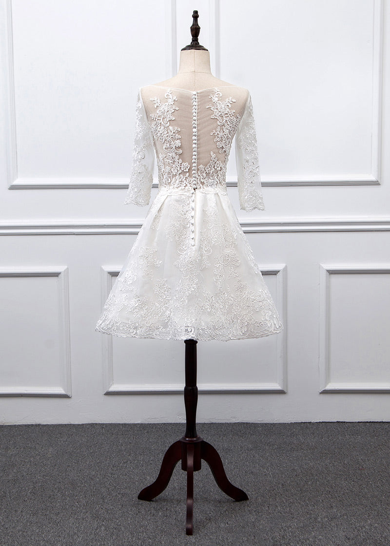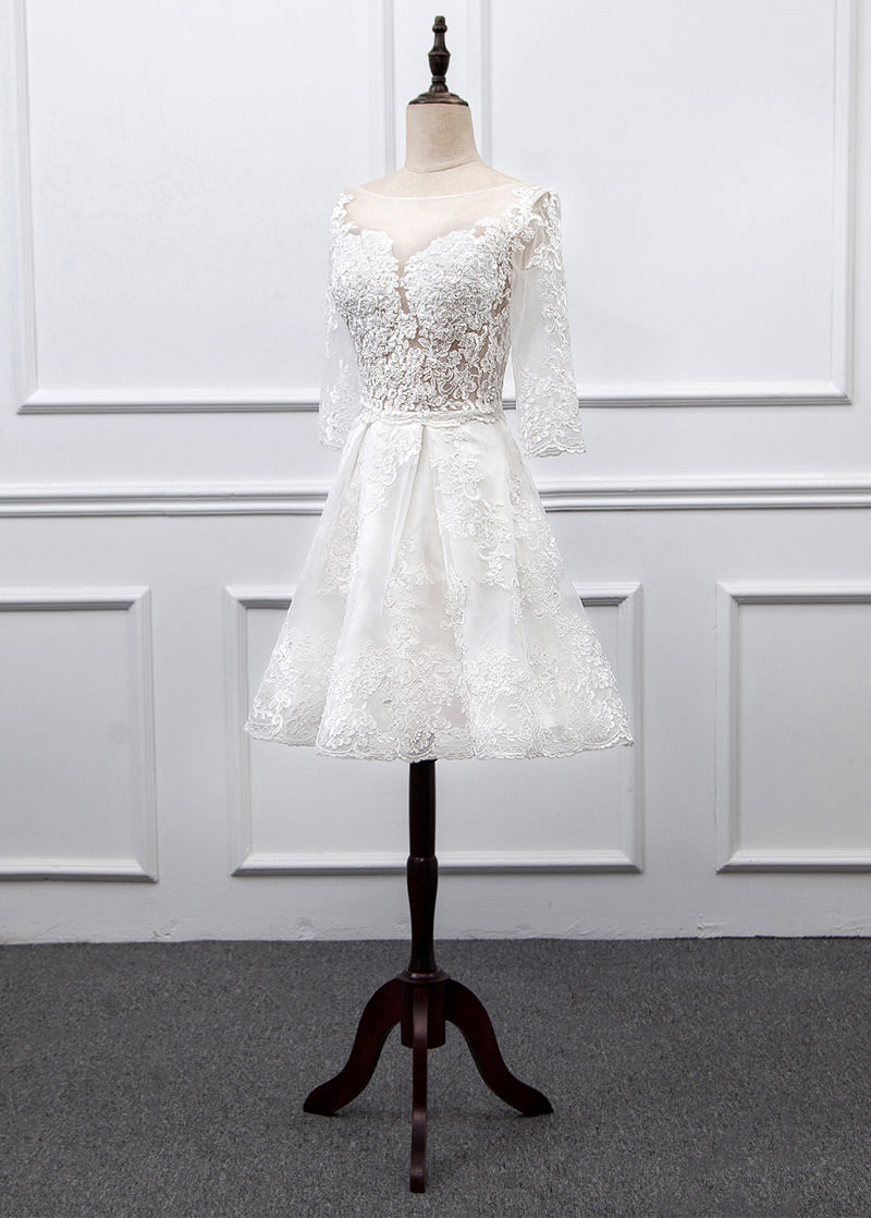 Sweetheart Lace Short Long Sleeves Wedding Dresses