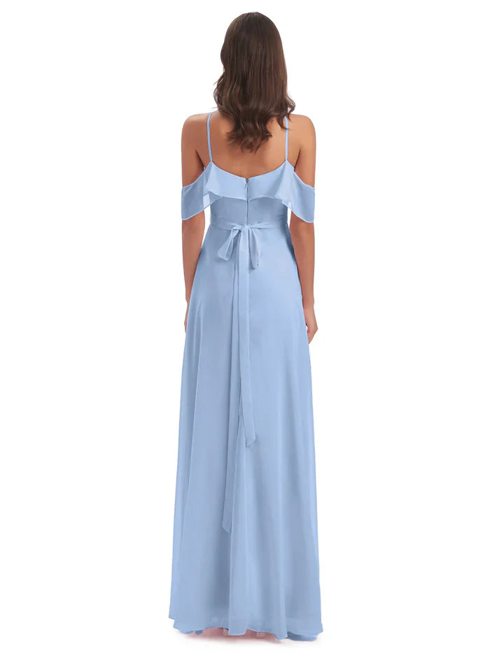 Tight off shoulder chiffon long and floor length bridesmaid dress