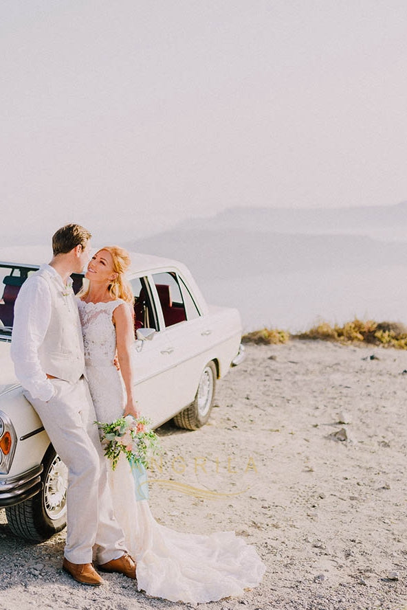 Trumpet/Mermaid Bateau Neckline Open Back Lace Wedding Dresses