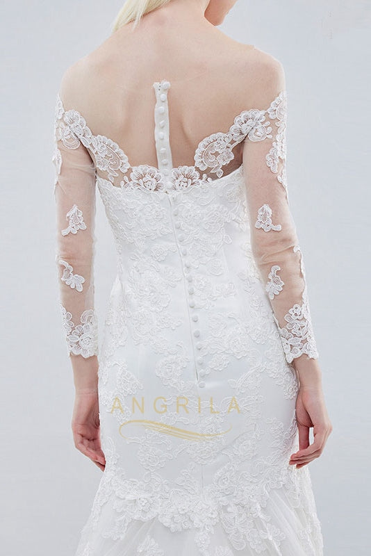 Trumpet/Mermaid Long Sleeves Lace Applique Wedding Dresses