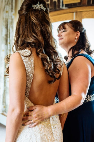 Silhouette: Mermaid/Trumpet Actual Images: No Sleeve Length(cm): Full Origin: CN(Origin) Decoration: Appliques Decoration: Beading Item Type: Mother of the Bride Dresses Sleeve Style: Regular Fabric Type: Tulle is_customized: Yes Built-in Bra: Yes Fashion Element: Simple