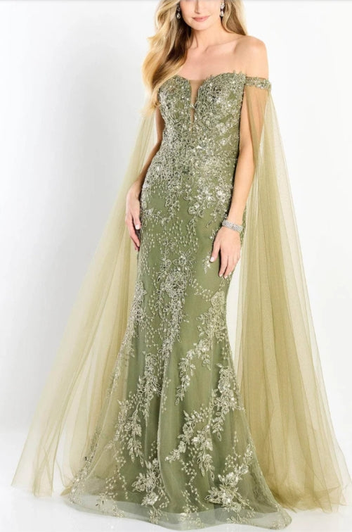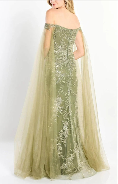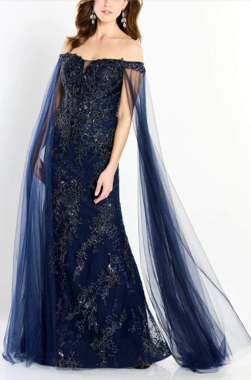 Tulle Beaded Off Shoulder Tulle Cape Gown Prom Dress