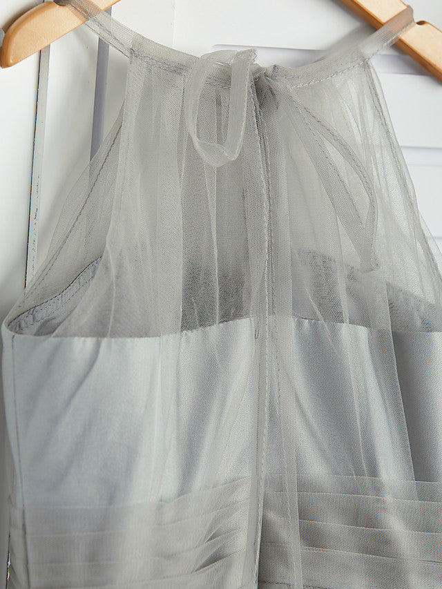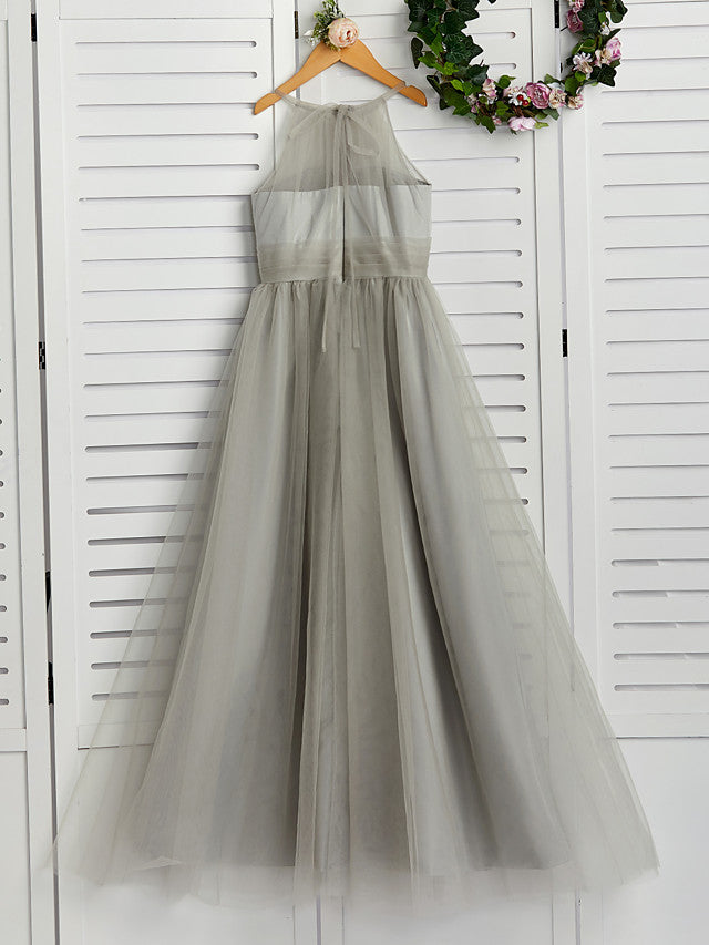 Tulle Flower Girl Dress with Ruching for A-Line Crew Neck Floor Length