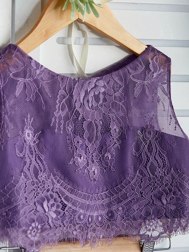 Two Piece A-Line Maxi Chiffon Lace Flower Girl Dress with Pleats