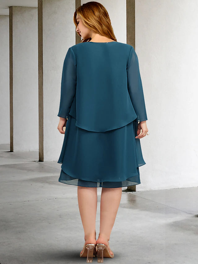 Two Piece A-Line Plus Size Curve Mother of the Bride Dresses Elegant Dress Formal Knee Length Sleeveless V Neck Chiffon with Ruffles
