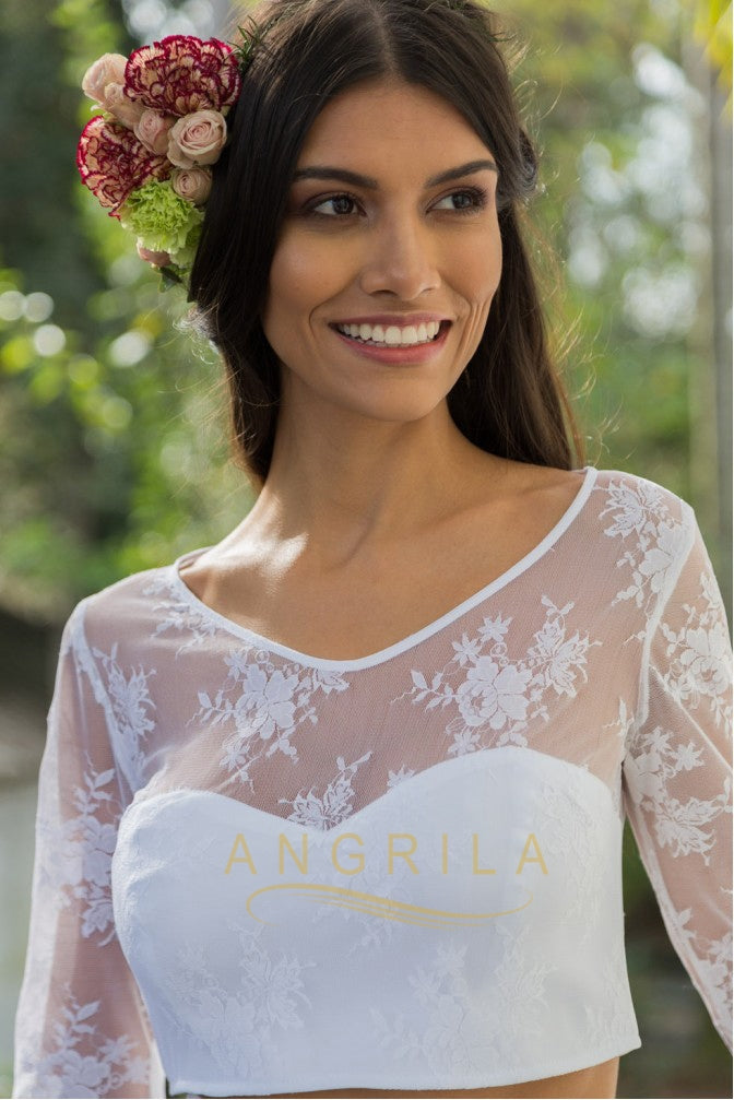Two-Piece Lace & Chiffon Wedding Dresses with Long Sleeves