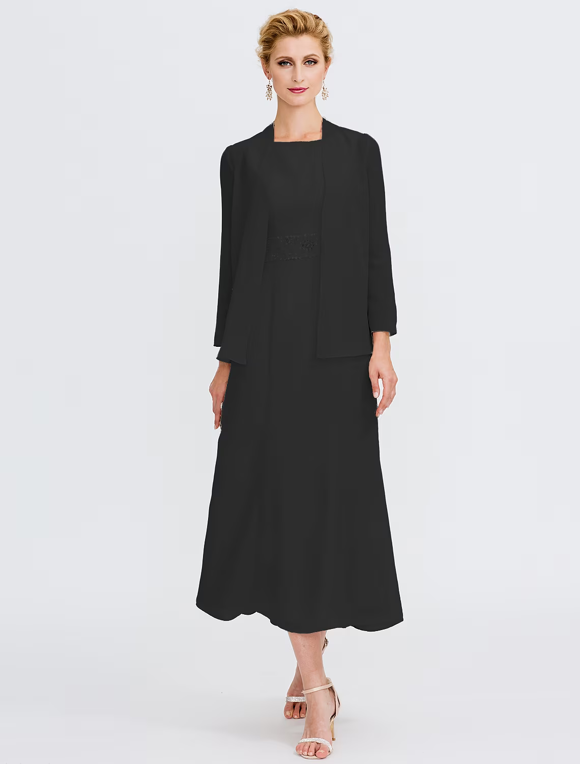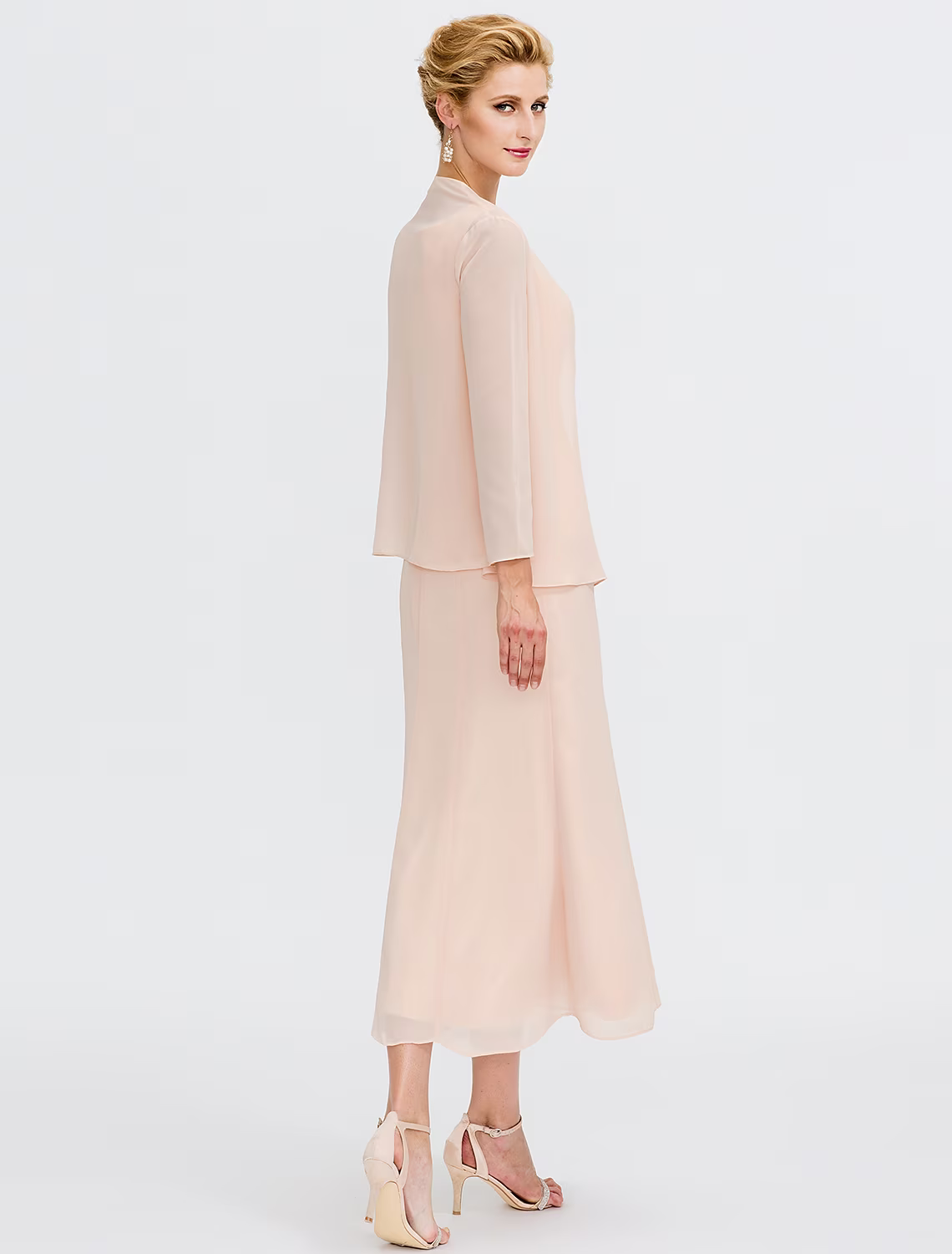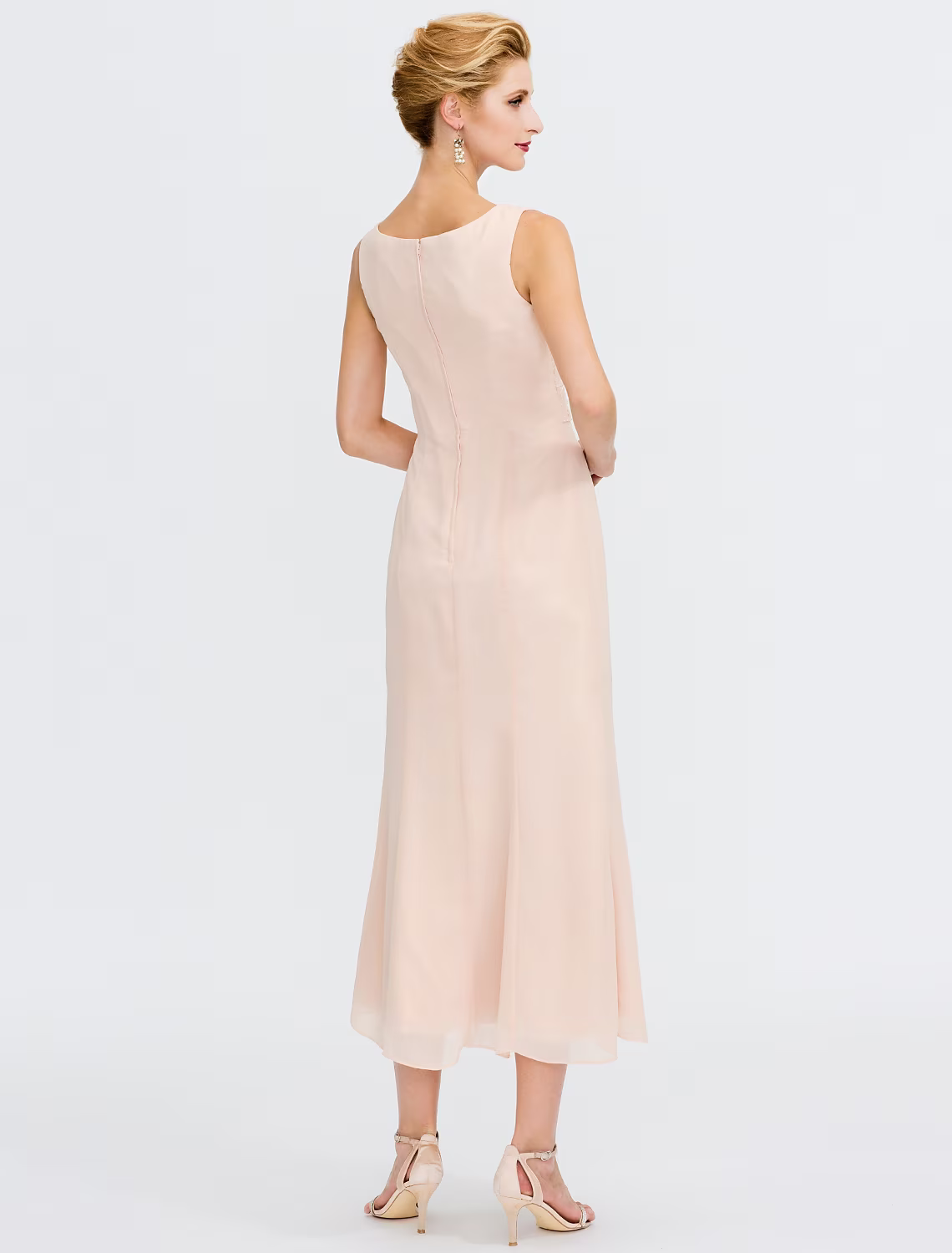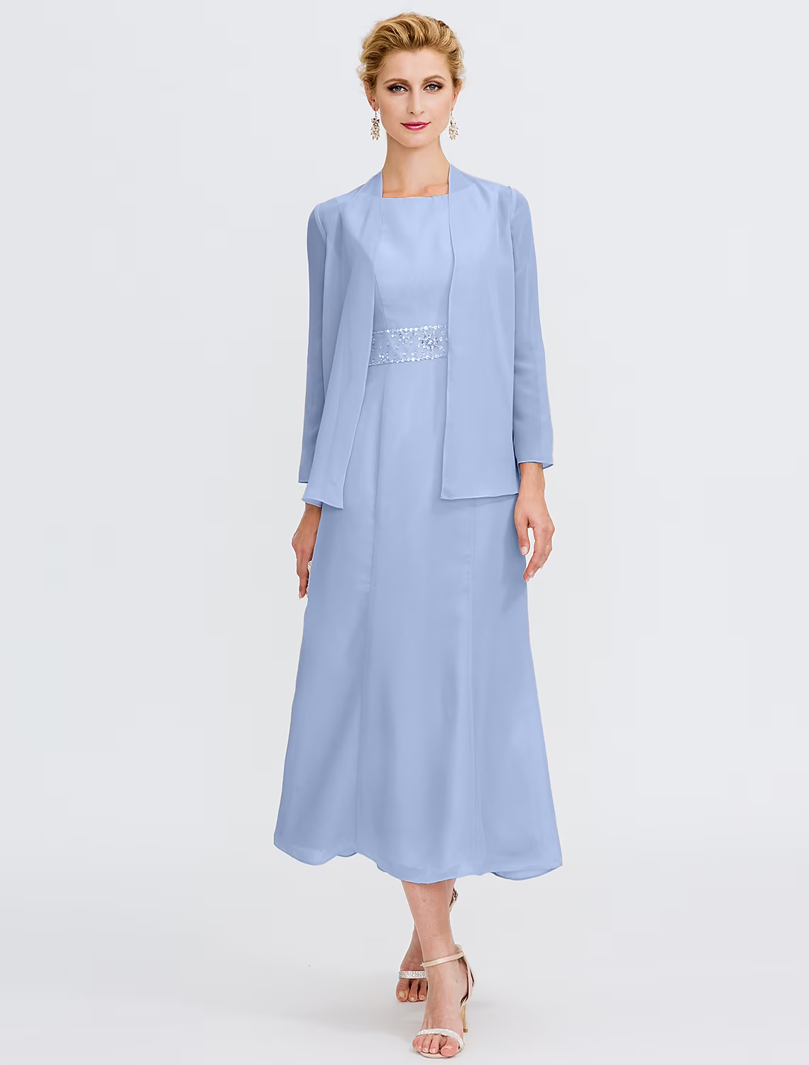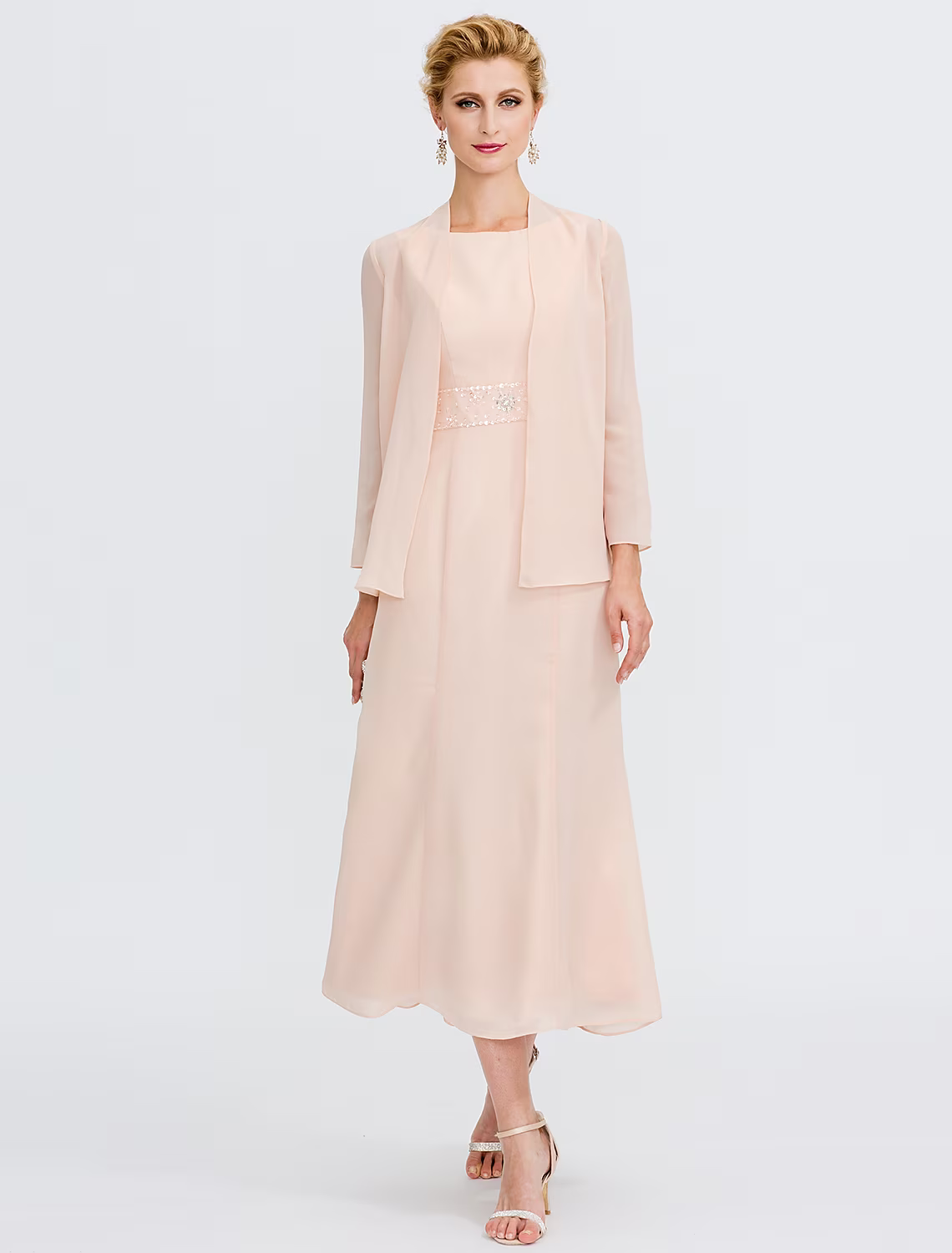 Two Piece Mother of the Bride Dress Plus Size Elegant Chiffon Sleeveless Wrap Included with Sash Ribbon Pleats Beading