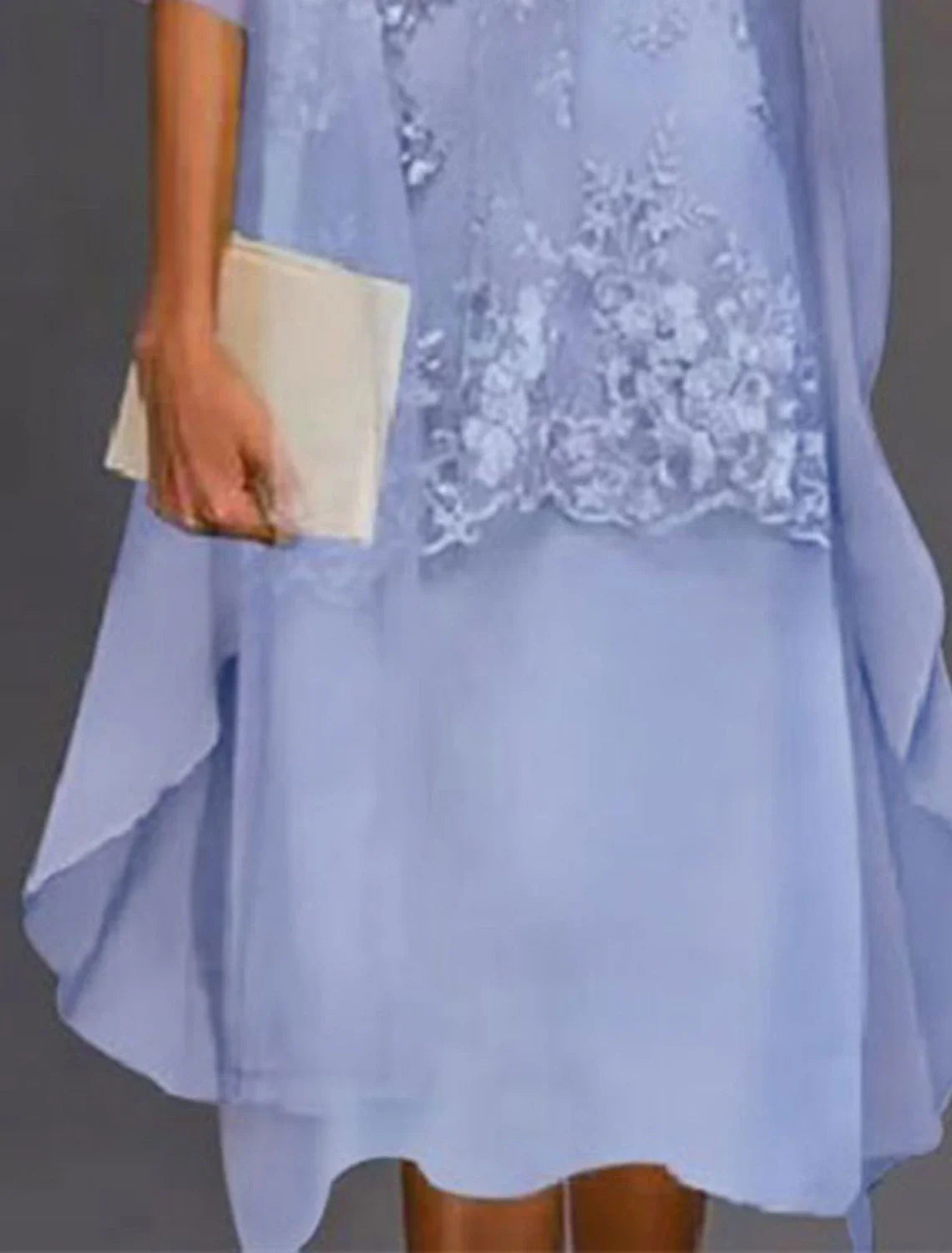 Two Piece Sheath / Column Mother of the Bride Dress Elegant Jewel Neck Tea Length Chiffon Lace Sleeveless Jacket Dresses with Appliques