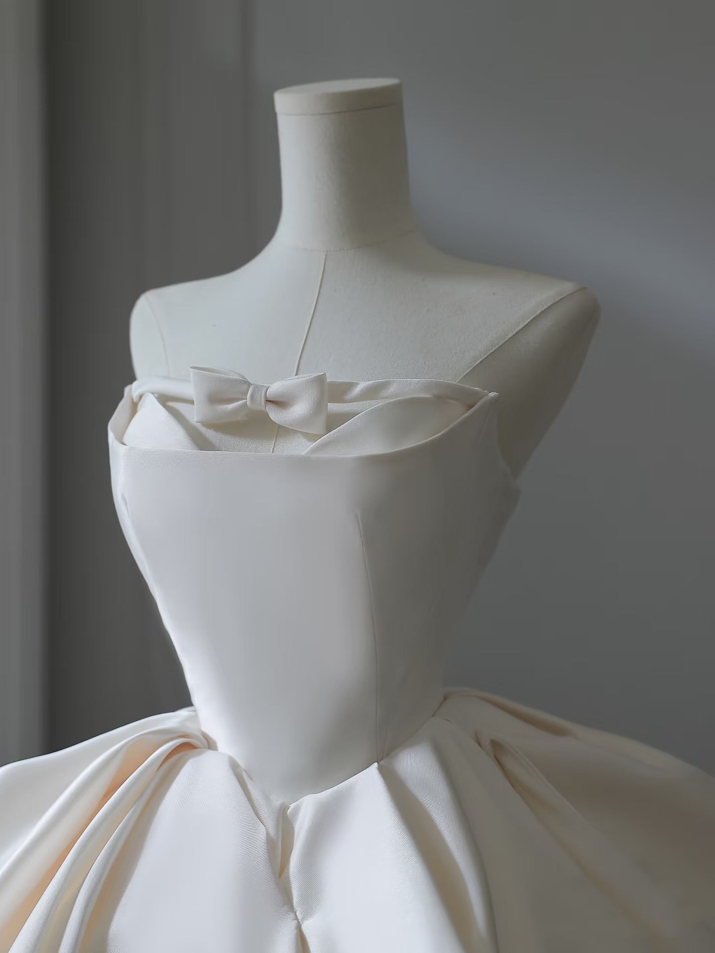 Unique Ball Gown Strapless Satin White Long Wedding Dresses Brides Dress S3842