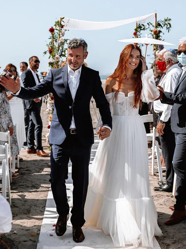 Unique Pleats Lace Long Sleeves Chapel Train A-line Wedding Dresses