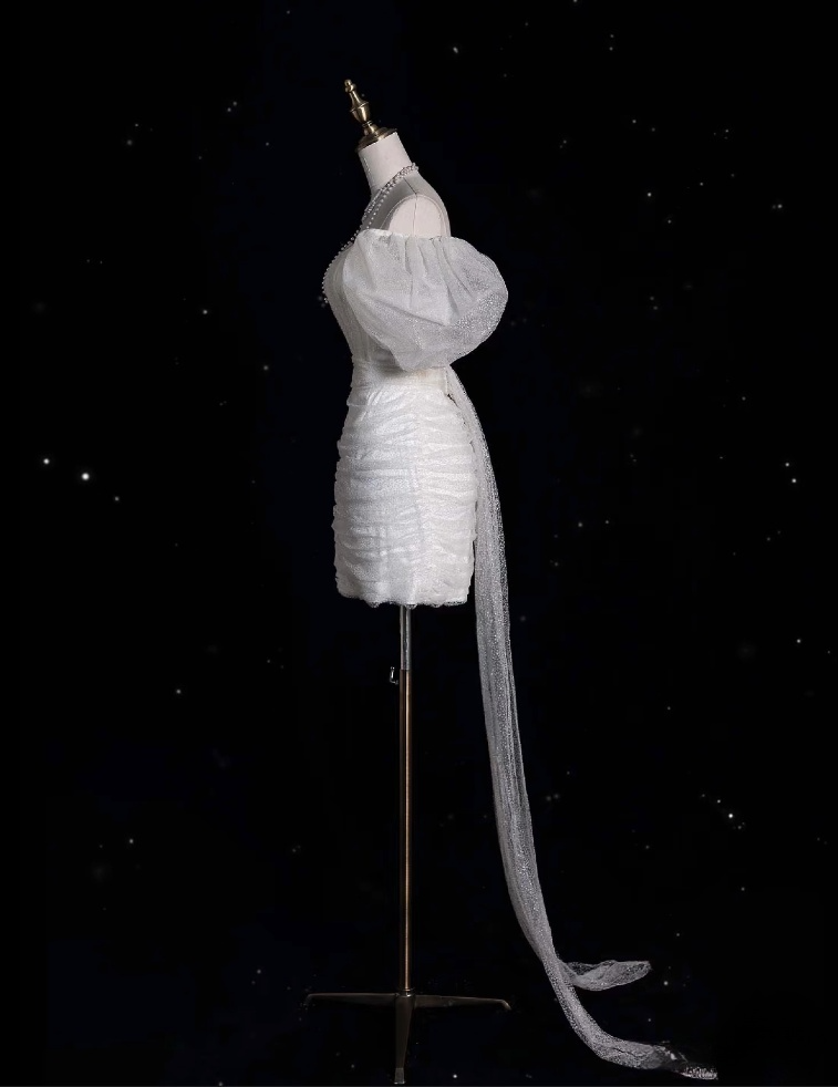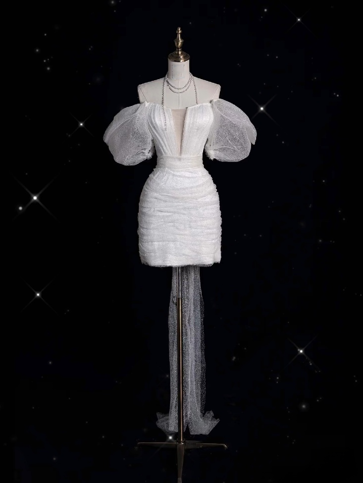 Unique Sheath Off The Shoulder Sequin Short Sleeves White Wedding Dresses Brides Dress SD1939
