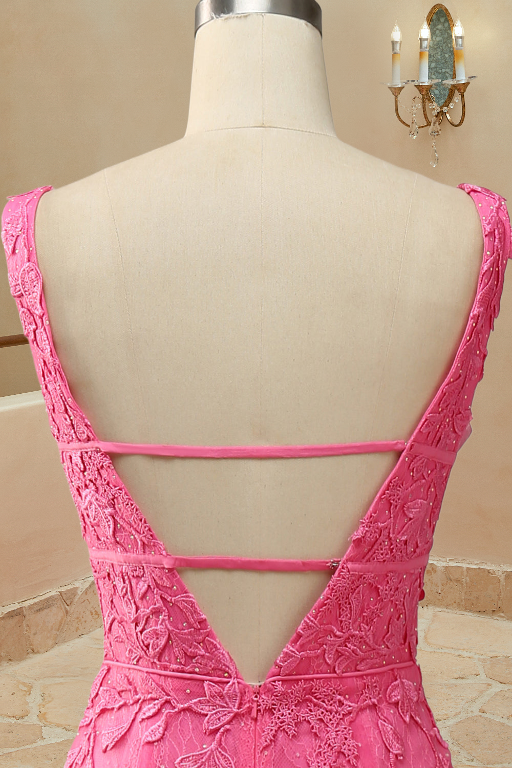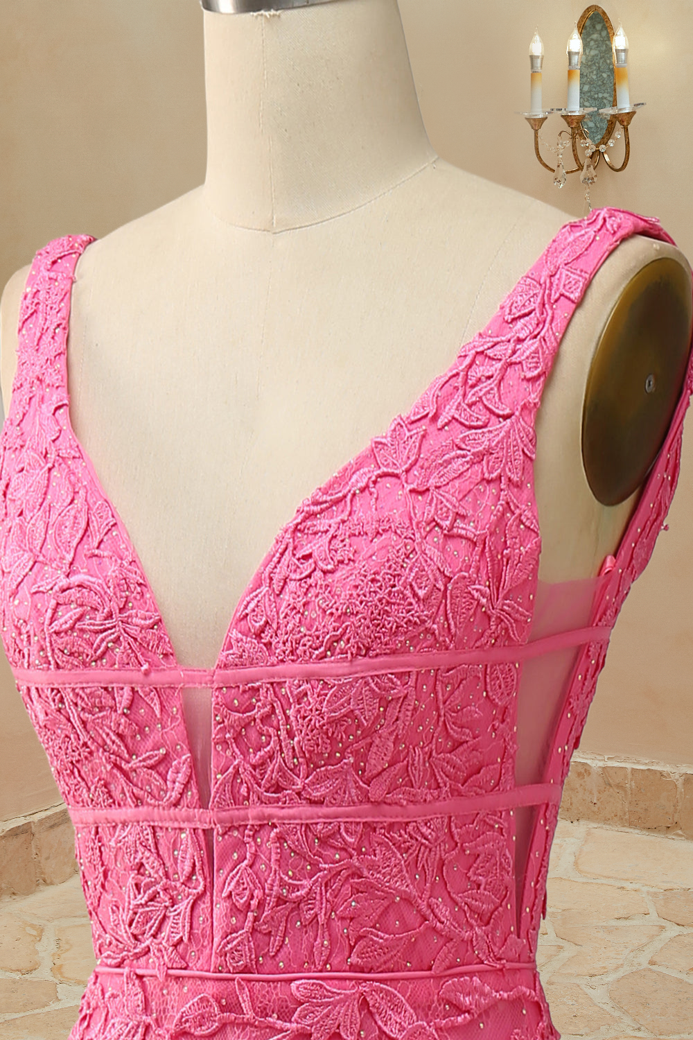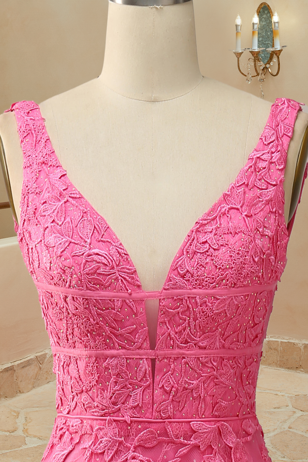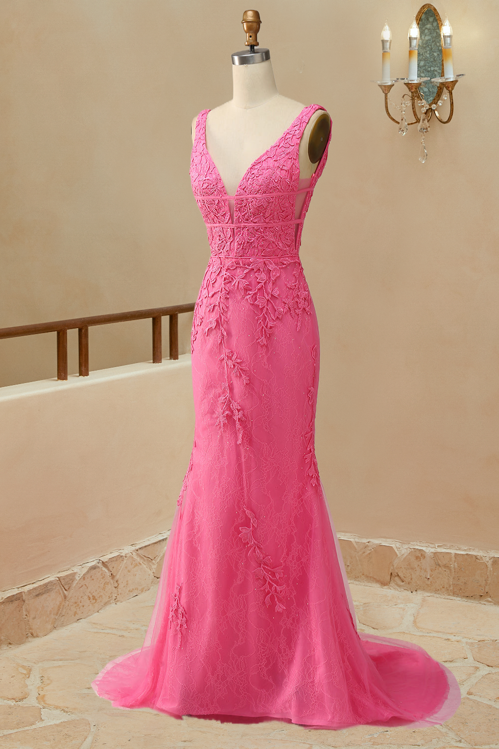 V Neck Prom Dresses Mermaid Lace With Applique And Sash Sweep Train