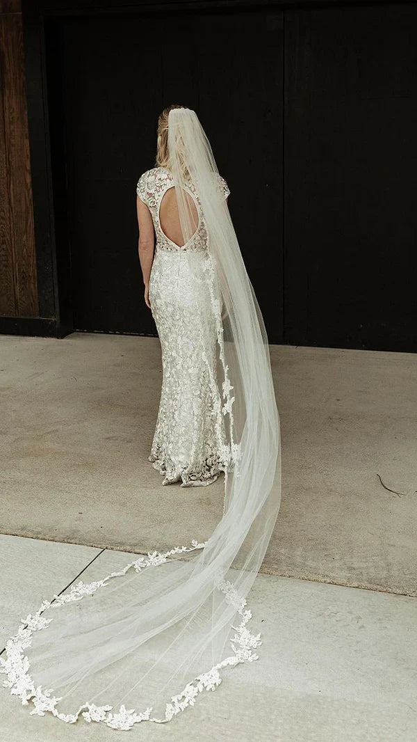 Vintage floral Lace Bateau Neckline Mermaid Wedding Dresses