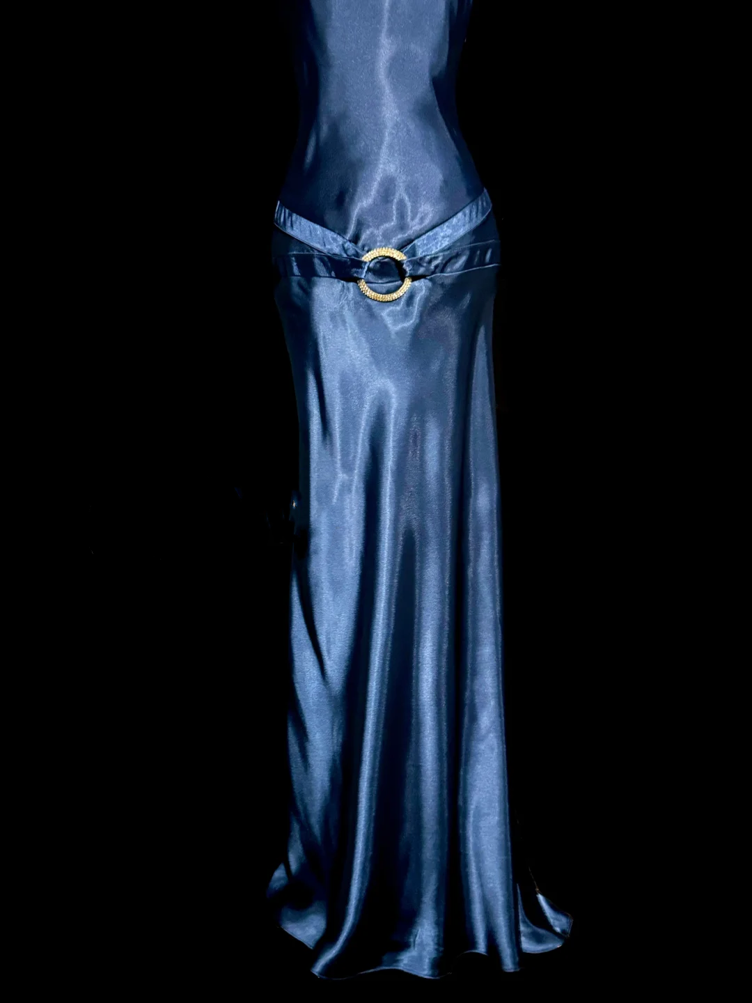 Vintage Mermaid Halter Neck Blue Satin Backless Prom Gown Fairy Prom Dresses SD2905