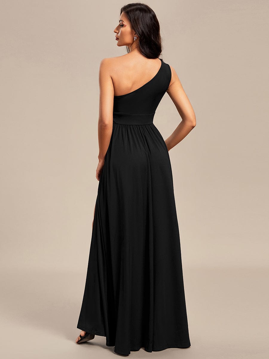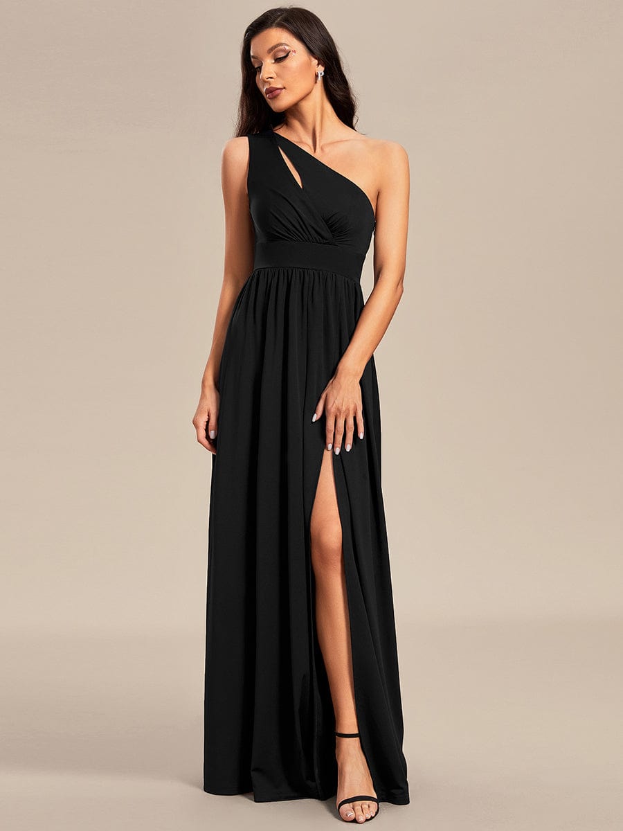 Weitese One Shoulder High Front Slit Hollow Out Neckline Bridesmaid Dress