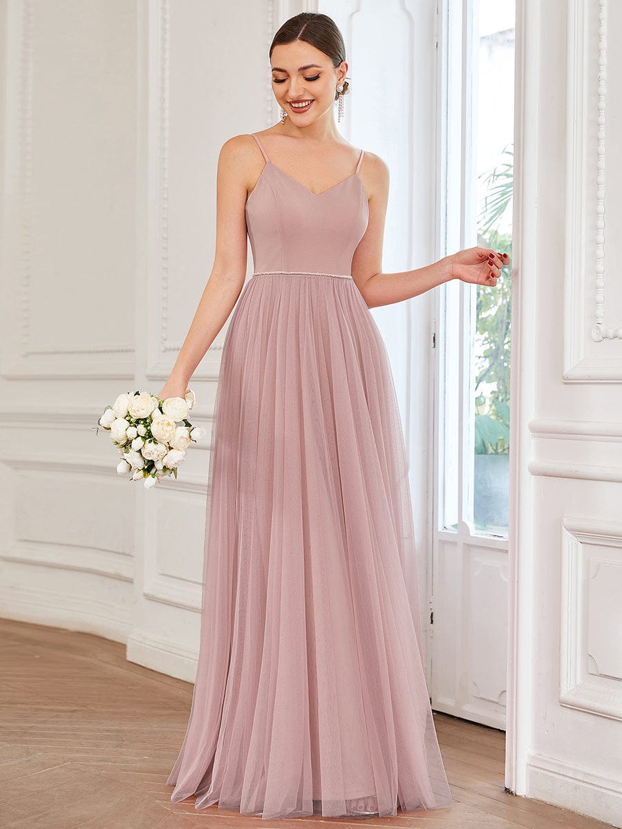 Weitese Sweetheart Spaghetti Strap A-Line Tulle Bridesmaid Dress