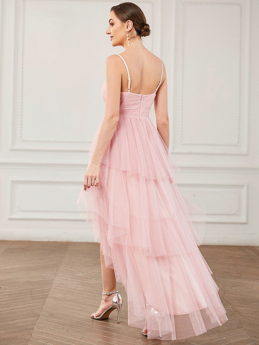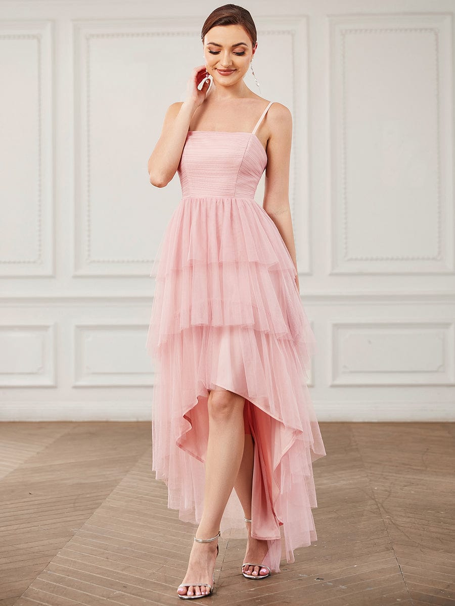 Weitese Tulle Spaghetti Strap Ruffled High-Low Bridesmaid Dress