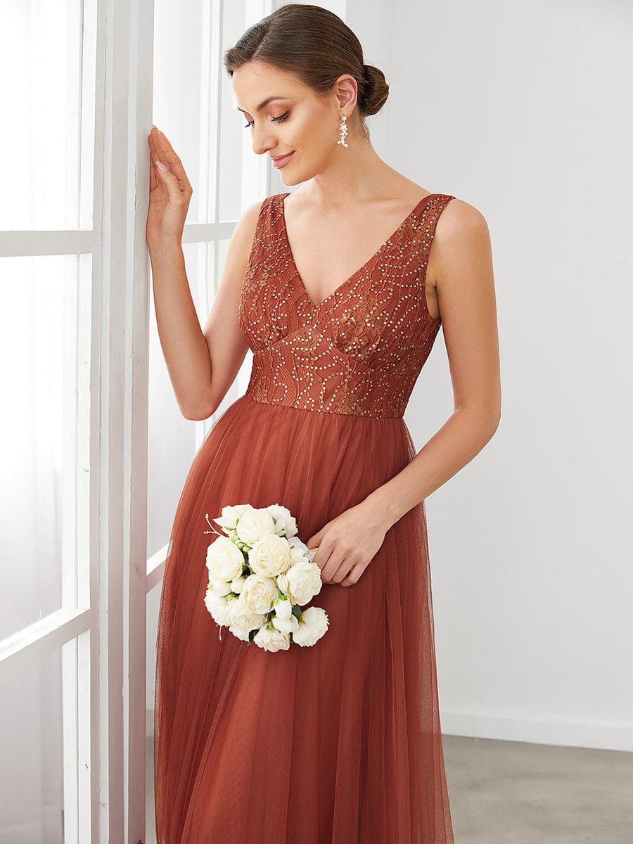 Weitese V-Neck Sleeveless A-Line Tulle Bridesmaid Dress