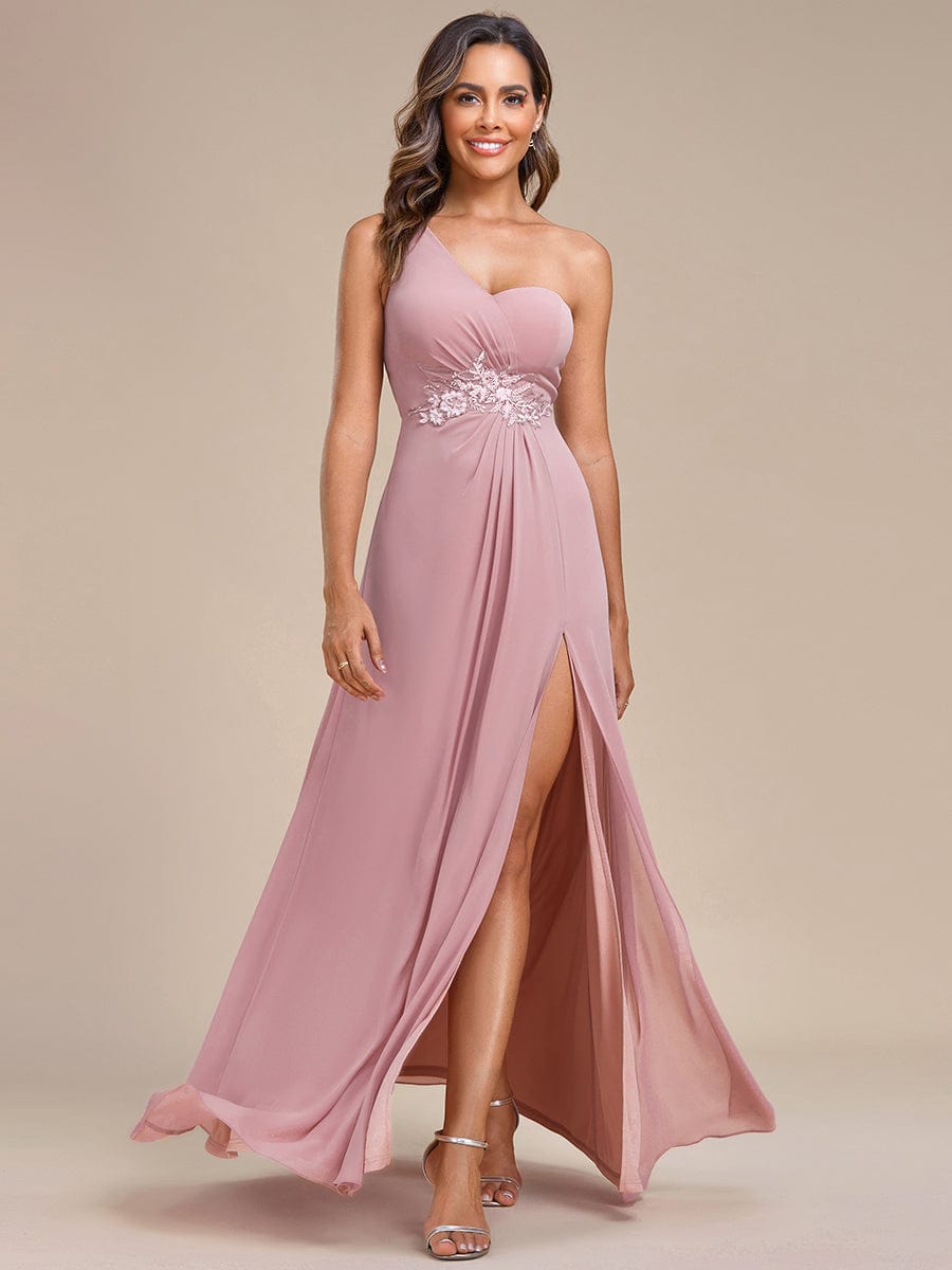 Weitese Waist Applique One-Shoulder A-Line Bridesmaid Dress with High Slit
