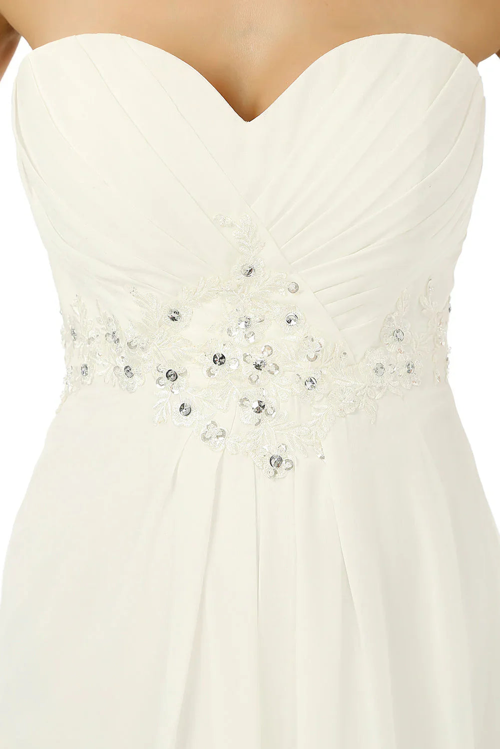 White Chiffon Sweetheart With Pleats Beading Bridesmaid Dresses