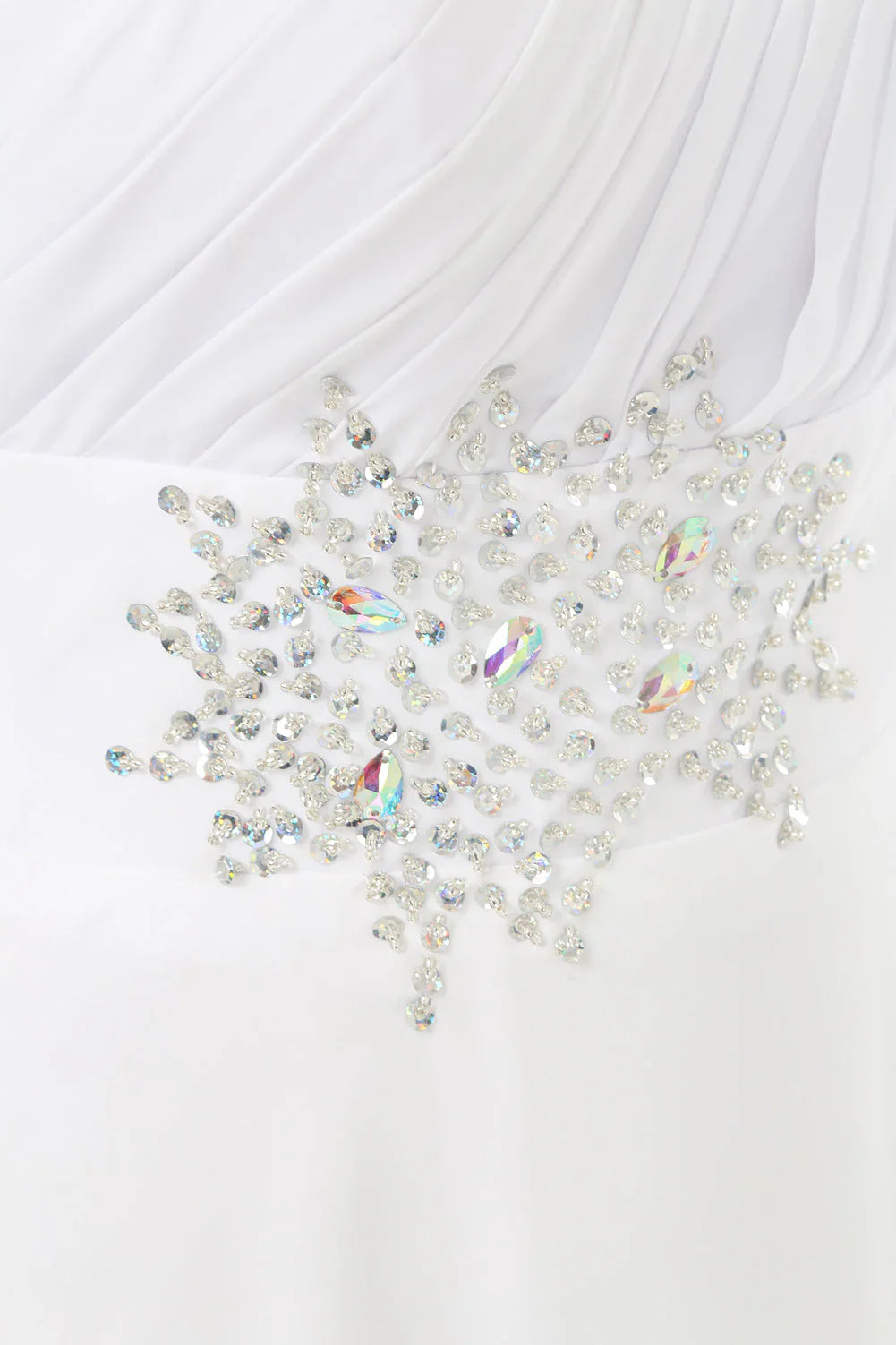 White One Shoulder Chiffon Pleats Beading Bridesmaid Dresses