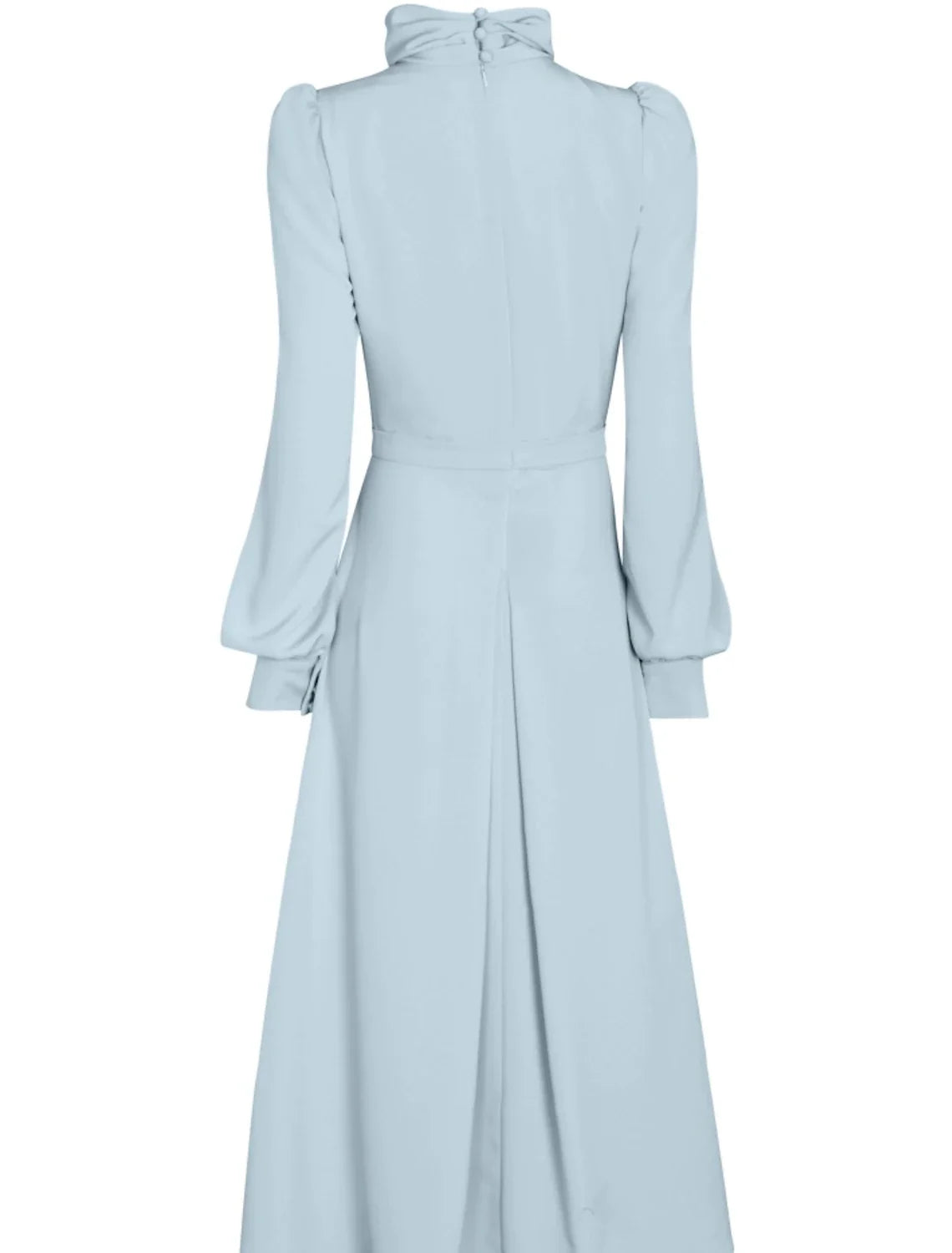 A-Line Mother of the Bride Dress Wedding Guest Elegant Petite High Neck Tea Length Long Sleeve with Ruffles Ruching Solid Color