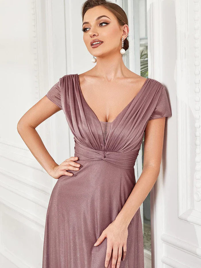 Aimishang Glitzy Pleated Sweetheart A-Line Long Mother of the Bride Dress