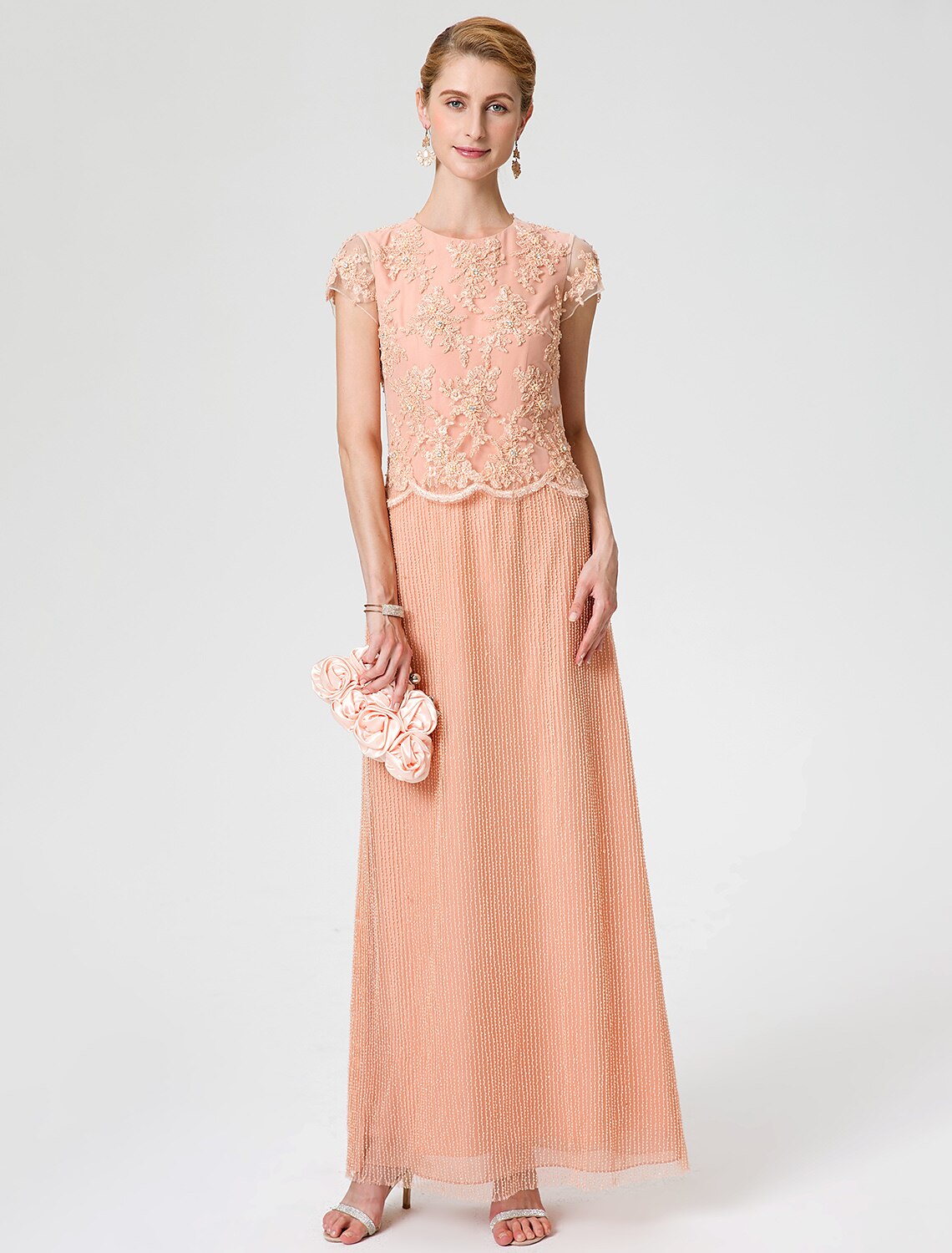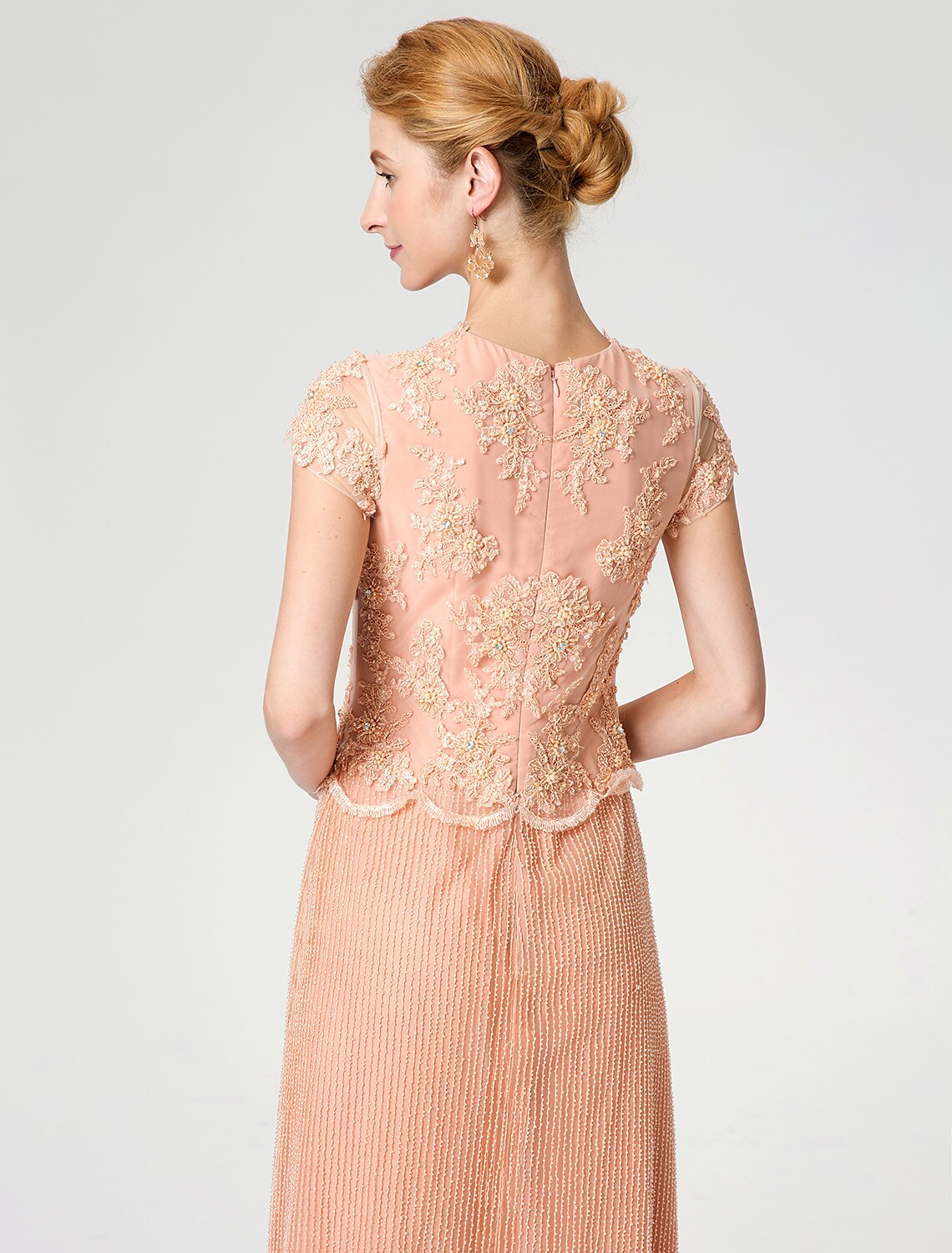 Style: ElegantSilhouette: Sheath / ColumnHemline / Train: Knee LengthNeckline: Jewel NeckFabric: SatinClosure: Zipper UPSleeve Length: Short SleeveEmbellishment: AppliquesTips: Colors may vary slightly due to different monitor settings, Hand Wash OnlyWrap: No