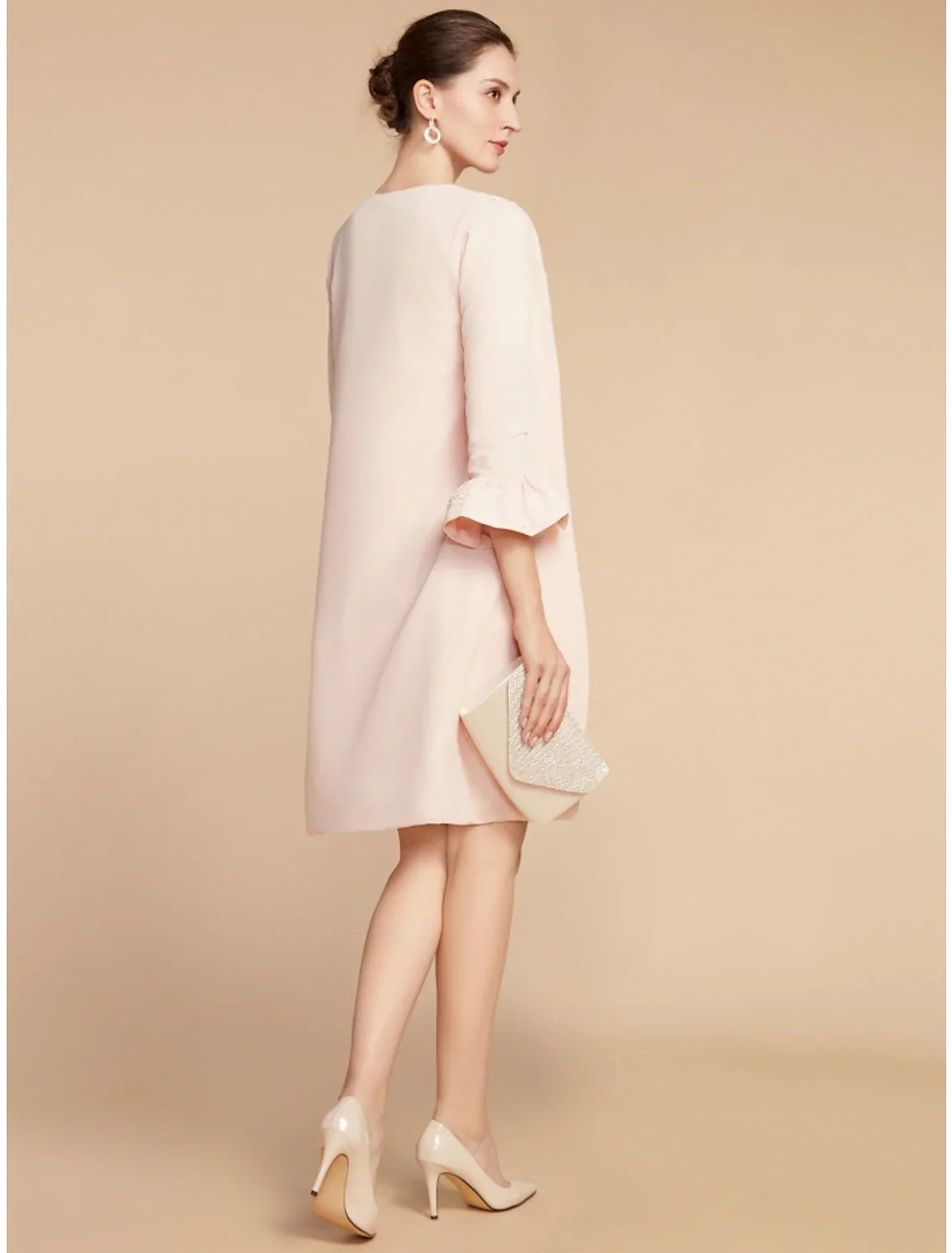 Two Piece A-Line Mother of the Bride Dress Wedding Guest Elegant Petite Jewel Neck Short / Mini Lace Stretch Fabric 3/4 Length Sleeve with Bow(s) Ruffles Solid Color